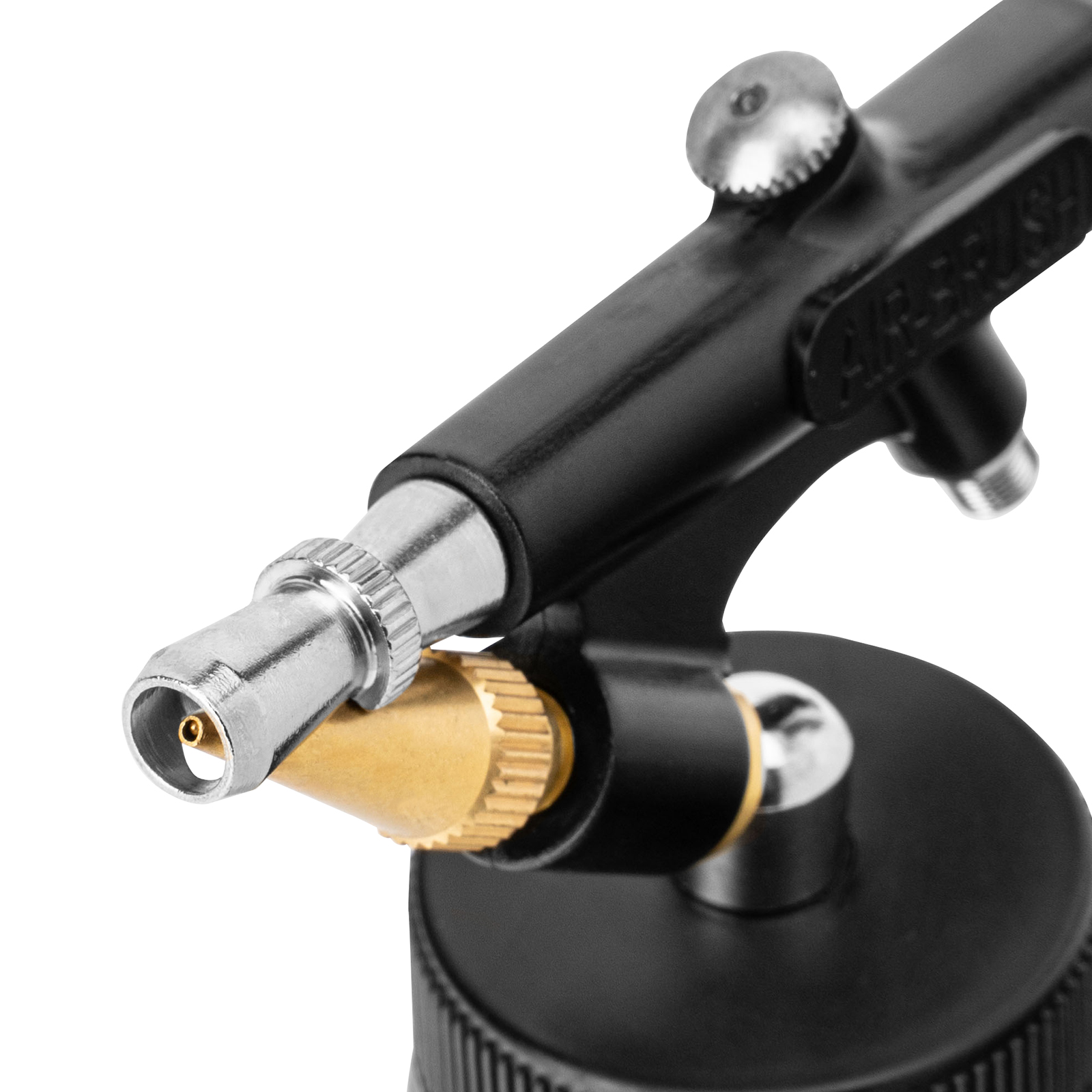 - Продуманная комплектация — аэрограф поставляется с дополнительным бачком, крышкой-переходником и дозатором для краски.