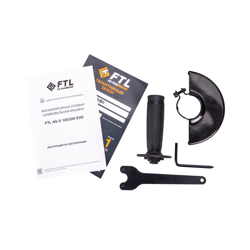 Аккумуляторная углошлифовальная машина FTL AG-X 125/20V EVO ("тушка") - профессиональный инструмент для резки, шлифования и зачистки изделий из металла, камня и прочих материалов. Узкий удобный хват, небольшой вес и функция плавного старта обеспечивают комфортную работу. Функция регулировки оборотов (3 скорости) расширяет базовый функционал УШМ, позволяя выполнять такие виды работ, как шлифовка мягких материалов, брашировка деревянных поверхностей, полировка (ограниченно). Современный, эффективный и тихий бесщёточный электромотор 20 В обеспечивает высокую производительность инструмента. Оборудована электронным контроллером BMS для диагностики и защиты массива ячеек от перегрузки, перегрева и глубокого разряда. ВНИМАНИЕ: арт. 8049 — это "тушка", т.е. только сам инструмент, в комплекте нет аккумулятора и нет зарядной станции (приобретаются отдельно или в комплекте с другими инструментами платформы EVO).ПЛАВНЫЙ СТАРТ: Безопасный запуск без рывков снижает нагрузку на редуктор и подшипники, ограничивает пусковые токи, продлевает срок эксплуатации самой УШМ, а также снижает риск получить травму при работе с инструментом.МОБИЛЬНОСТЬ И АВТОНОМНОСТЬ: Свобода от проводов - работайте абсолютно в любом месте без надобности заботиться о наличии бытовой розетки поблизости.РЕГУЛИРОВКА ОБОРОТОВ: Гибкая настройка под разные материалы и режимы. Регулировка оборотов (3 скорости) позволяет оптимально настроить скорость для обработки различных по плотности материалов.ЗАЩИТА ОТ СЛУЧАЙНОГО ВКЛЮЧЕНИЯ: Блокировка от случайного включения предотвращает непреднамеренный запуск вновь подключённого инструмента после отключения аккумулятора.ЗАЩИТА ОТ ПЕРЕГРУЗКИ: При чрезмерных нагрузках оборудование отключится автоматически, предотвратив преждевременный выход из строя аккумулятора и повреждение деталей шлифовальной машинки.ПРЕИМУЩЕСТВА:Совместимость с единой аккумуляторной платформой "EVO"Бесщёточный электромотор 20 ВПлавный старт (Soft Start)Для работы от аккумуляторов EVO 4 А⋅чПродвинутая пылезащитаТормоз двигателя3х-цветный индикатор разряда аккумулятораБлокировка шпинделяЗащита от перегрузкиВыключатель с защитой от случайного включенияРезьба шпинделя: M14Крепление защитного кожуха: HEX (под шестигранник - ключ в комплекте)ФУНКЦИОНАЛЬНЫЕ ОСОБЕННОСТИ:ЕДИНАЯ АККУМУЛЯТОРНАЯ ПЛАТФОРМА EVO: Единая аккумуляторная платформа EVO — это современное решение для организации домашнего и профессионального электроинструмента с концепцией «много инструментов - один аккумулятор». Доводы в пользу концепции: растущее количество беспроводного электроинструмента у потребителей с аккумуляторами разных типоразмеров, напряжений, требующих разных зарядных устройств, высокая доля аккумулятора в общей стоимости электроинструмента (до 30%), прогрессивно растущая экономия с приобретением каждого нового инструмента, совместимого с платформой EVO. Модель FTL AG-X 125/20V EVO является частью единой аккумуляторной платформы EVO и совместима с аккумуляторами и зарядной станцией этой линейки.КОМПЛЕКТАЦИЯ: Аккумуляторная угловая шлифовальная машина FTL AG-X 125/20V EVO – 1 шт.; Защитный кожух – 1 шт.; Ключ – 1 шт.; Шестигранный ключ – 1 шт.; Дополнительная рукоятка – 1 шт.; Гайка и фланец – 1 компл.; Цветная коробка – 1 шт.; Инструкция + Гарантийный талон – 1 компл.*Производитель оставляет за собой 