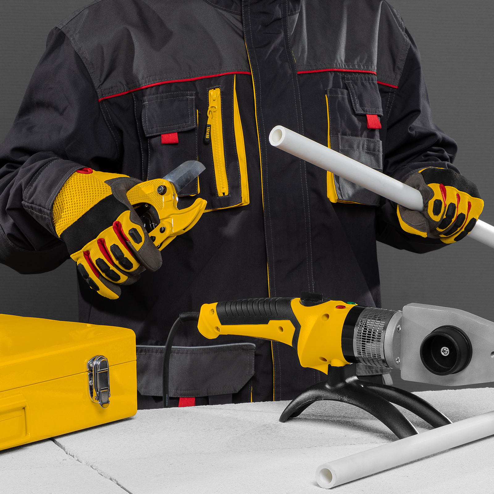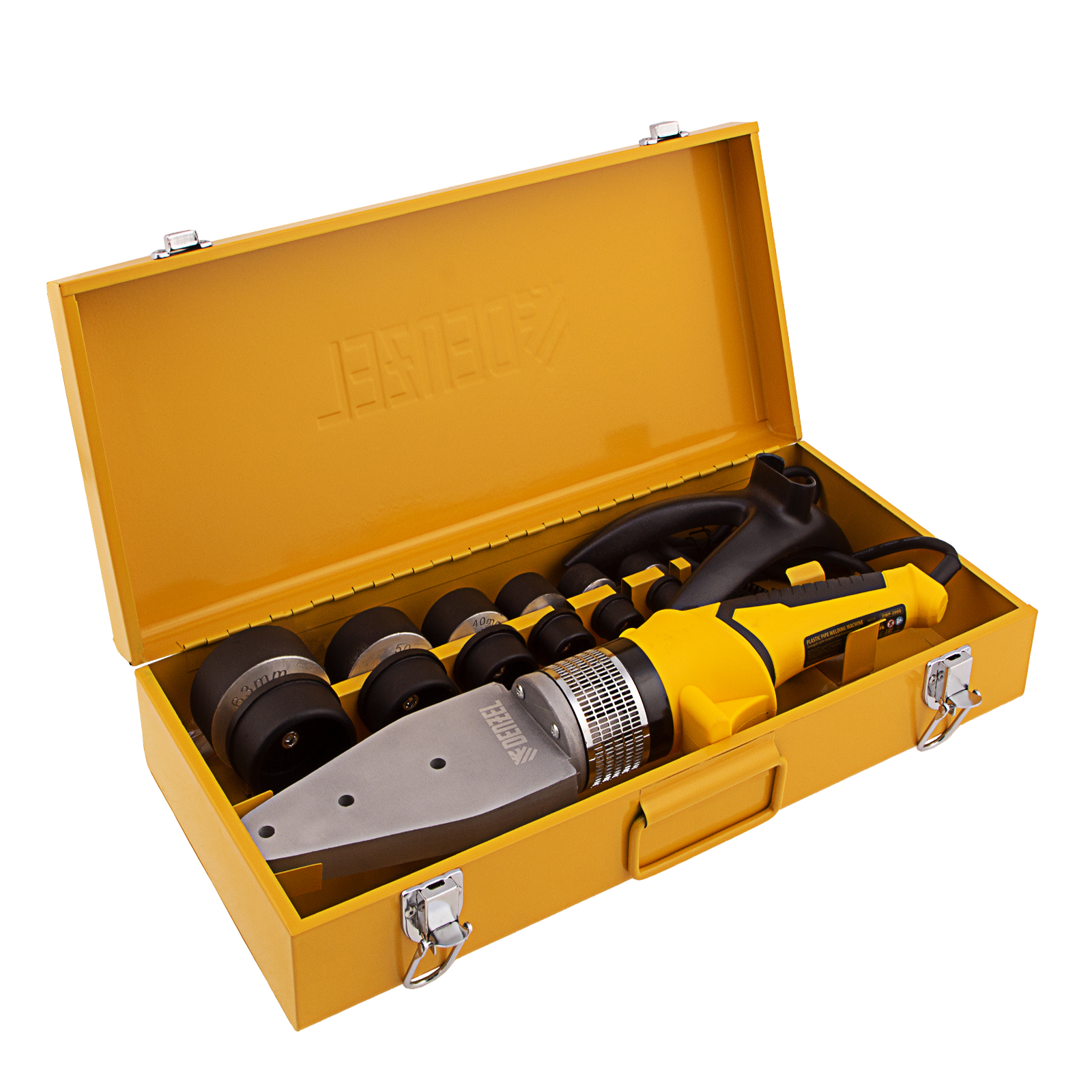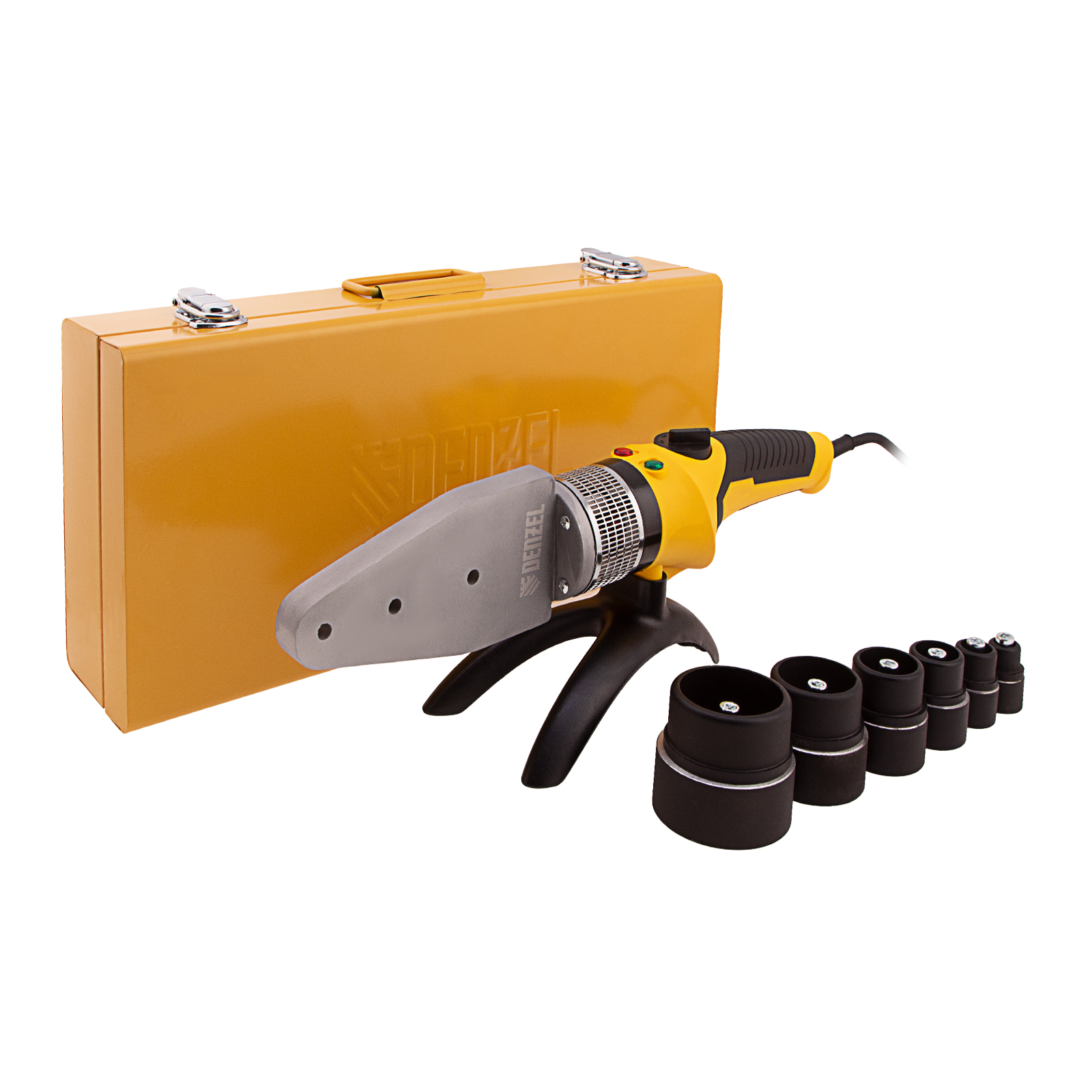 Аппарат для сварки пластиковых труб DWP-2000, Х-Pro, 2000 Вт, 300 град, комплект насадок, 20-63 мм Denzel в Москве