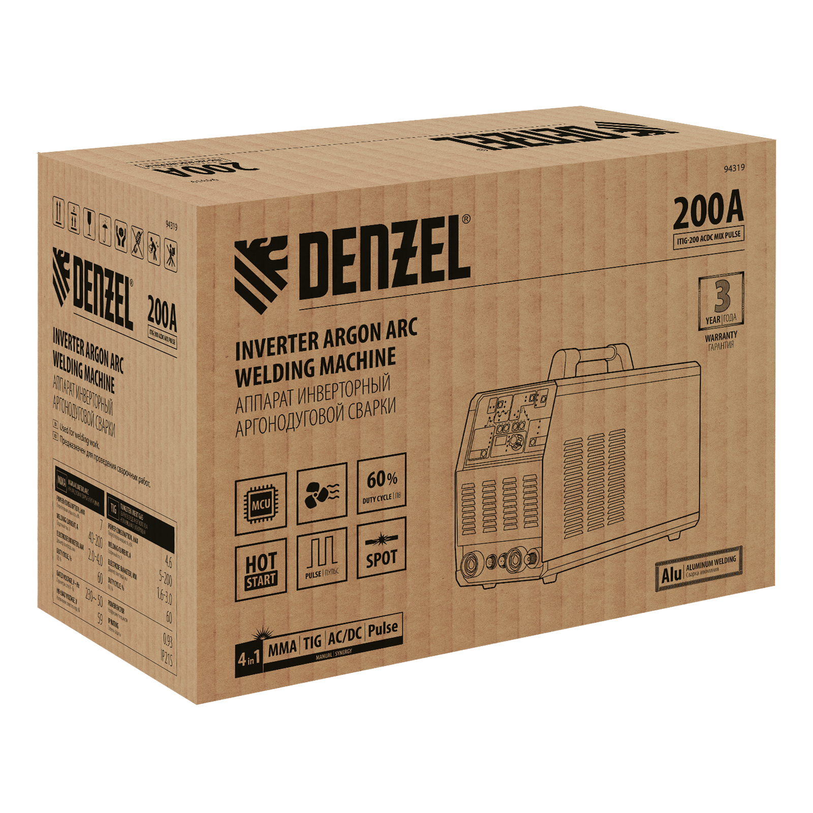 Аппарат инвертор. аргонодуговой сварки ITIG-200 ACDC Mix Pulse, 200 А, ПВ 60% Denzel в Москве