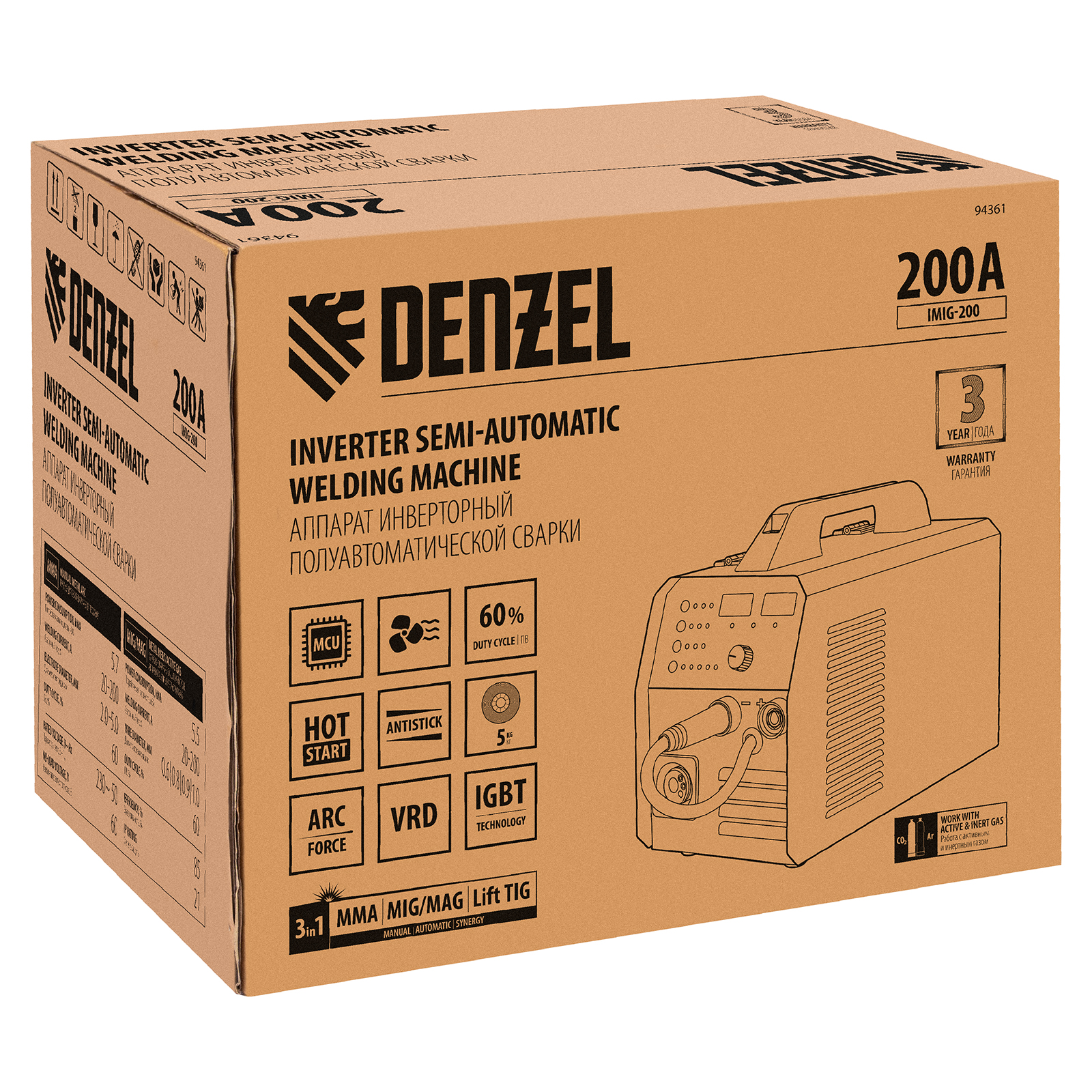 Аппарат инвертор. полуавтомат. cварки IMIG-200, 200 А, ПВ 60%, катушка 5 кг Denzel в Москве
