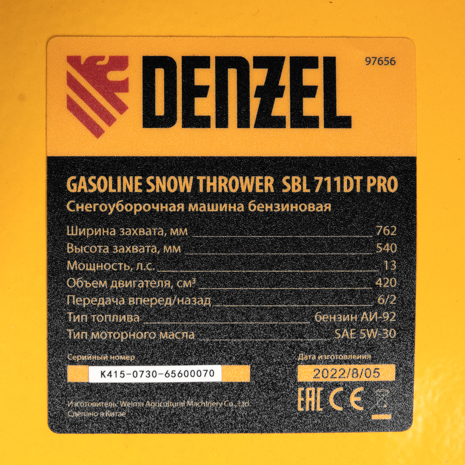 Бензиновая снегоуборочная машина SBL 711DT PRO, 420cc, гусеницы, эл.старт, блок. дифф. Denzel в Москве