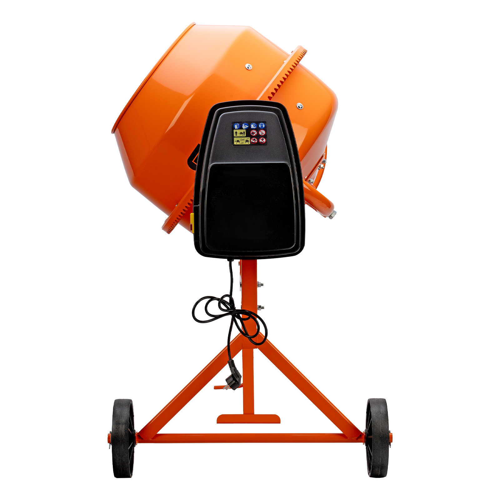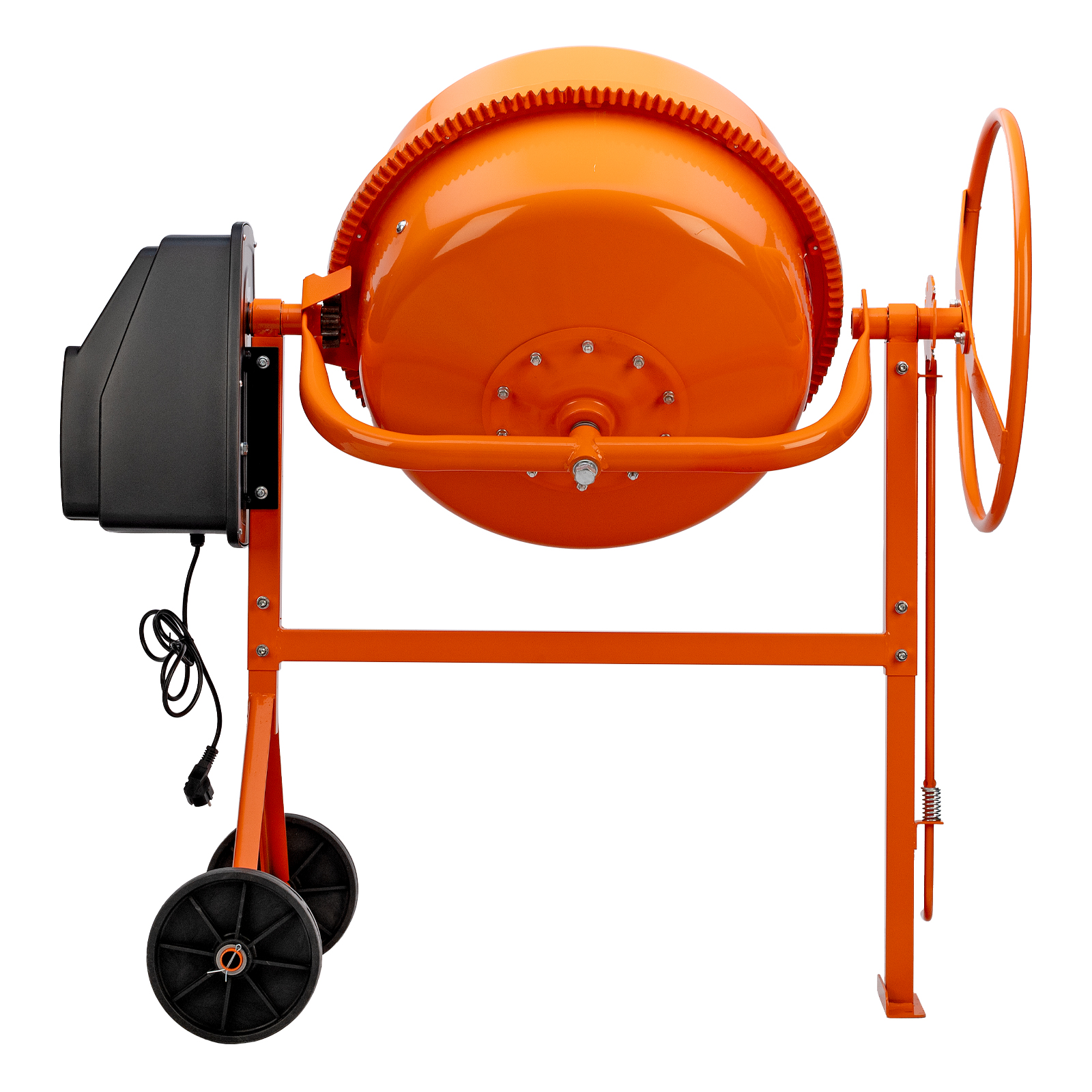 - Удобный механизм наклона — барабан легко фиксируется в нужном положении, что упрощает загрузку компонентов и подачу готовой смеси.