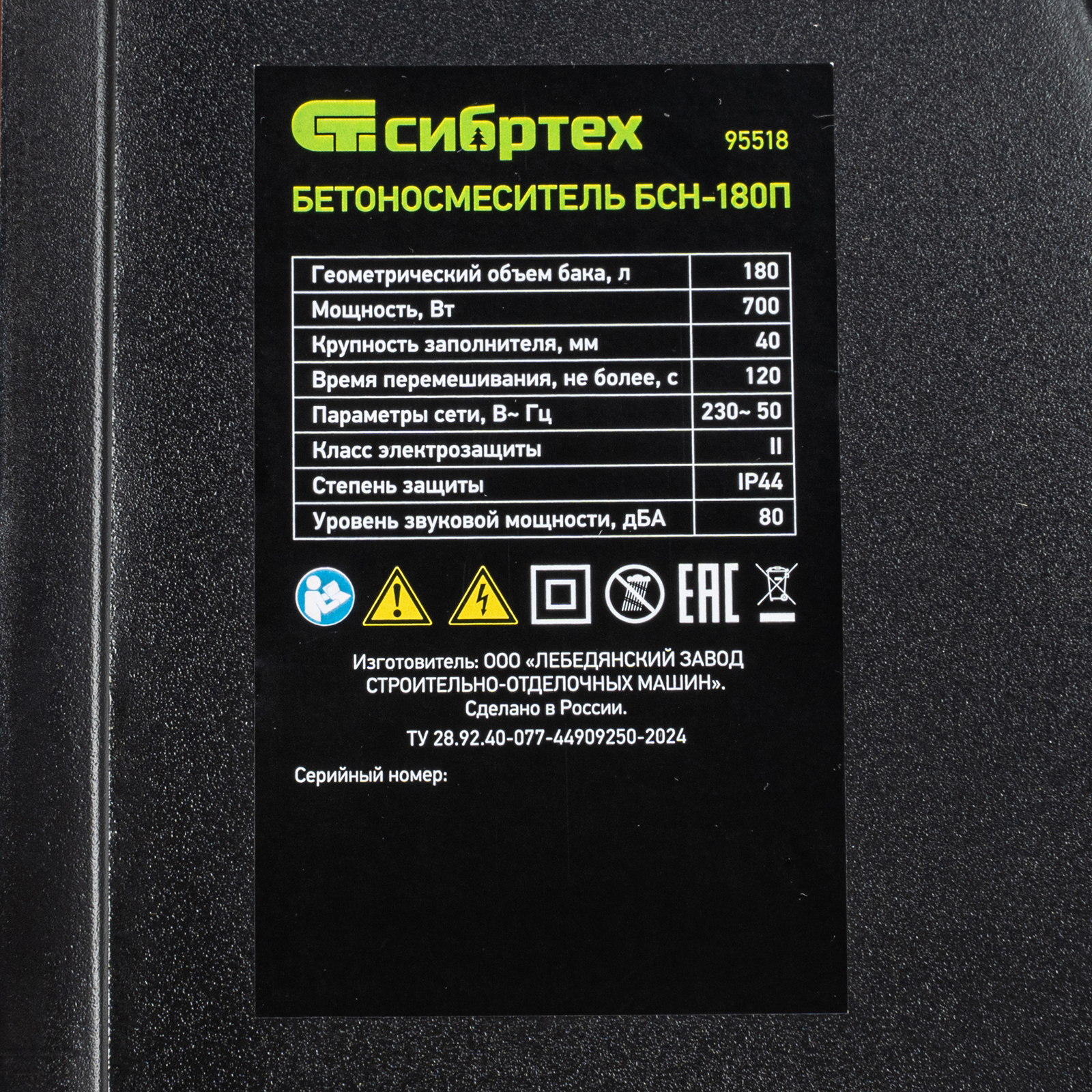 Бетоносмеситель БСН-180П, мощность 700 Вт, полиамидный венец Сибртех в Москве