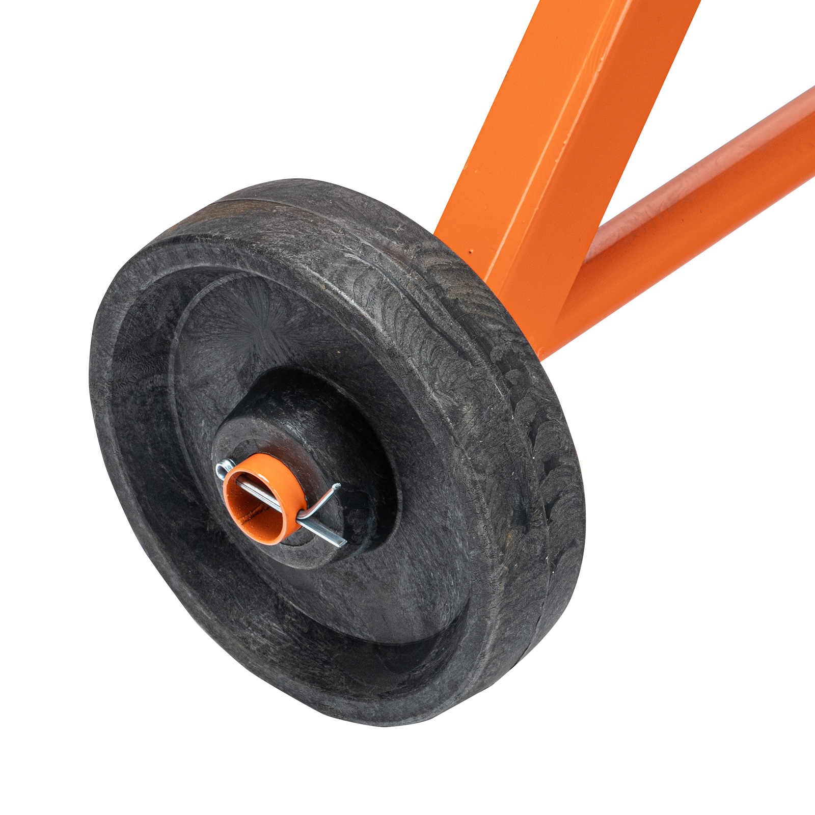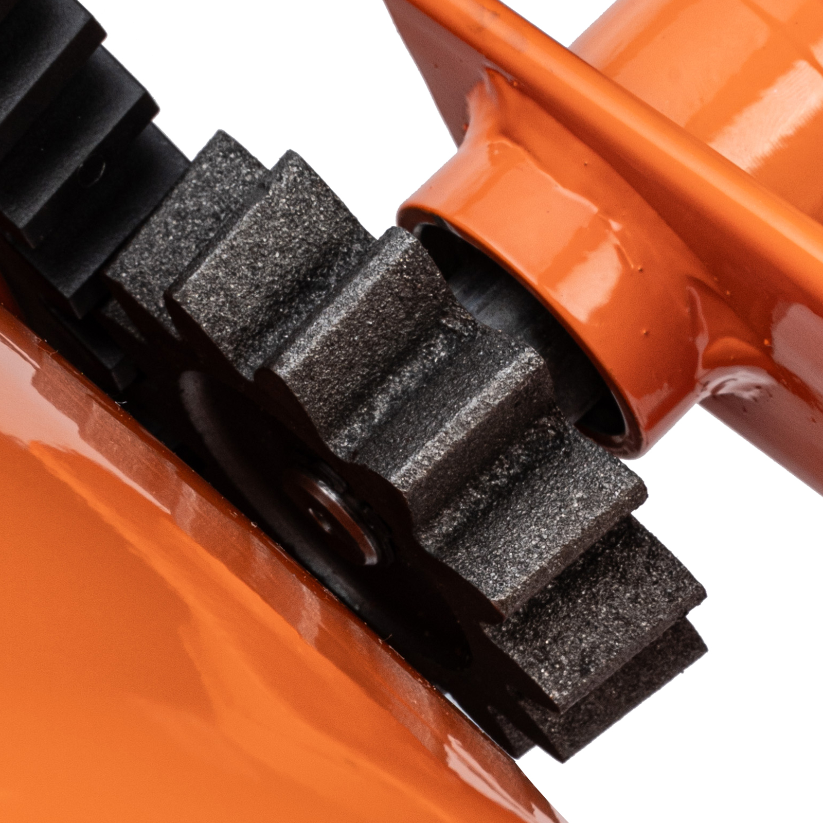 - Удобная загрузка и выгрузка смеси — барабан наклоняется при помощи маховика и легко фиксируется в нужном положении.