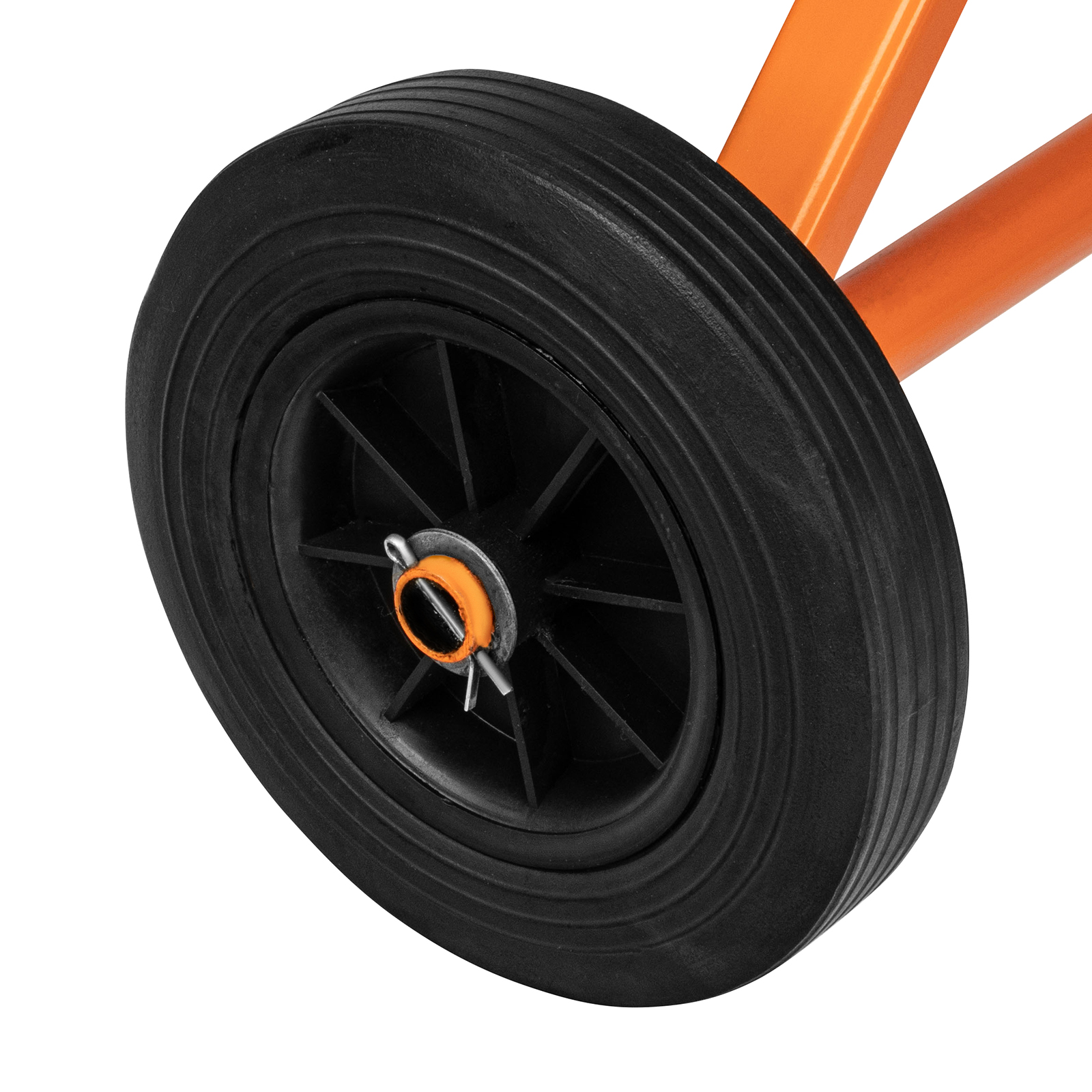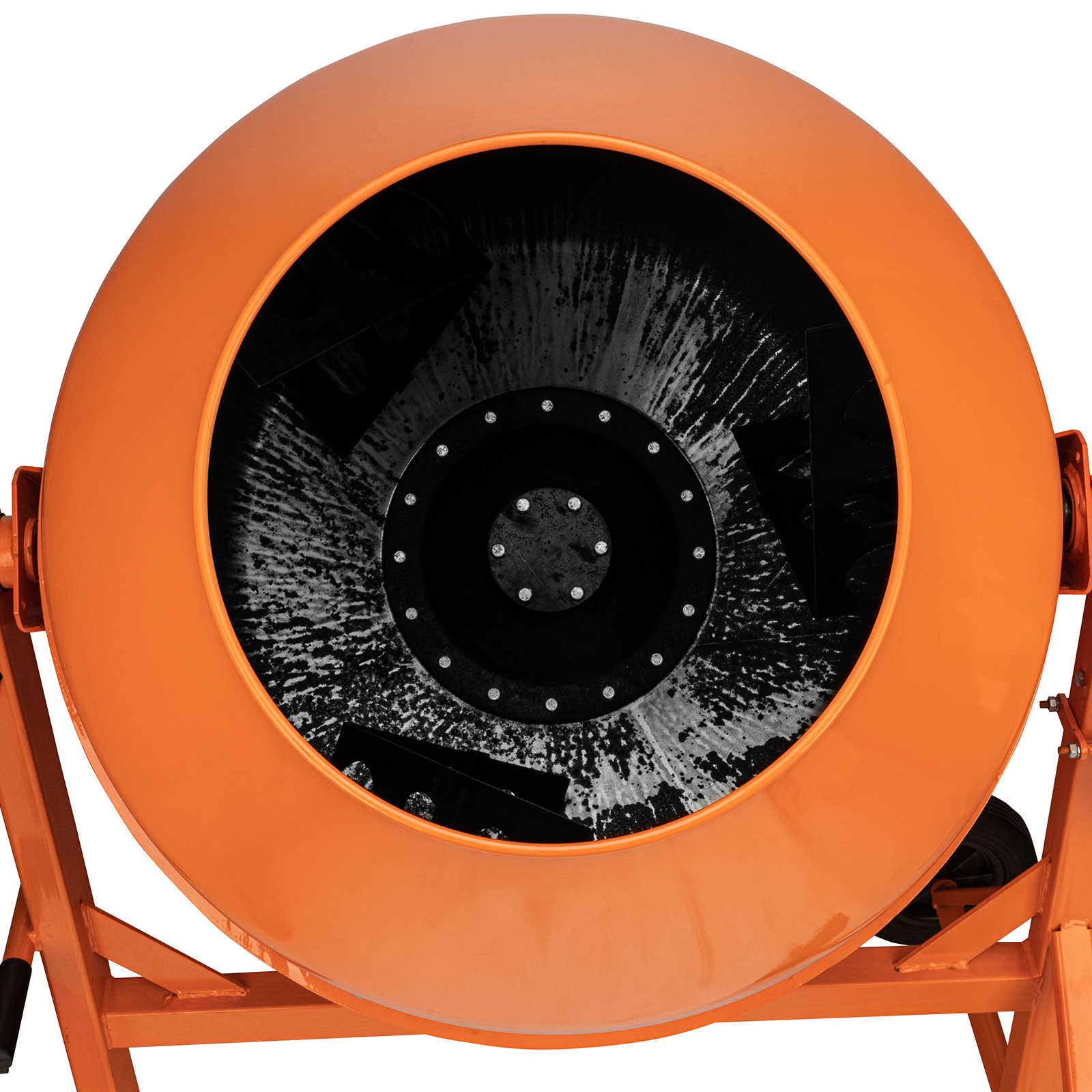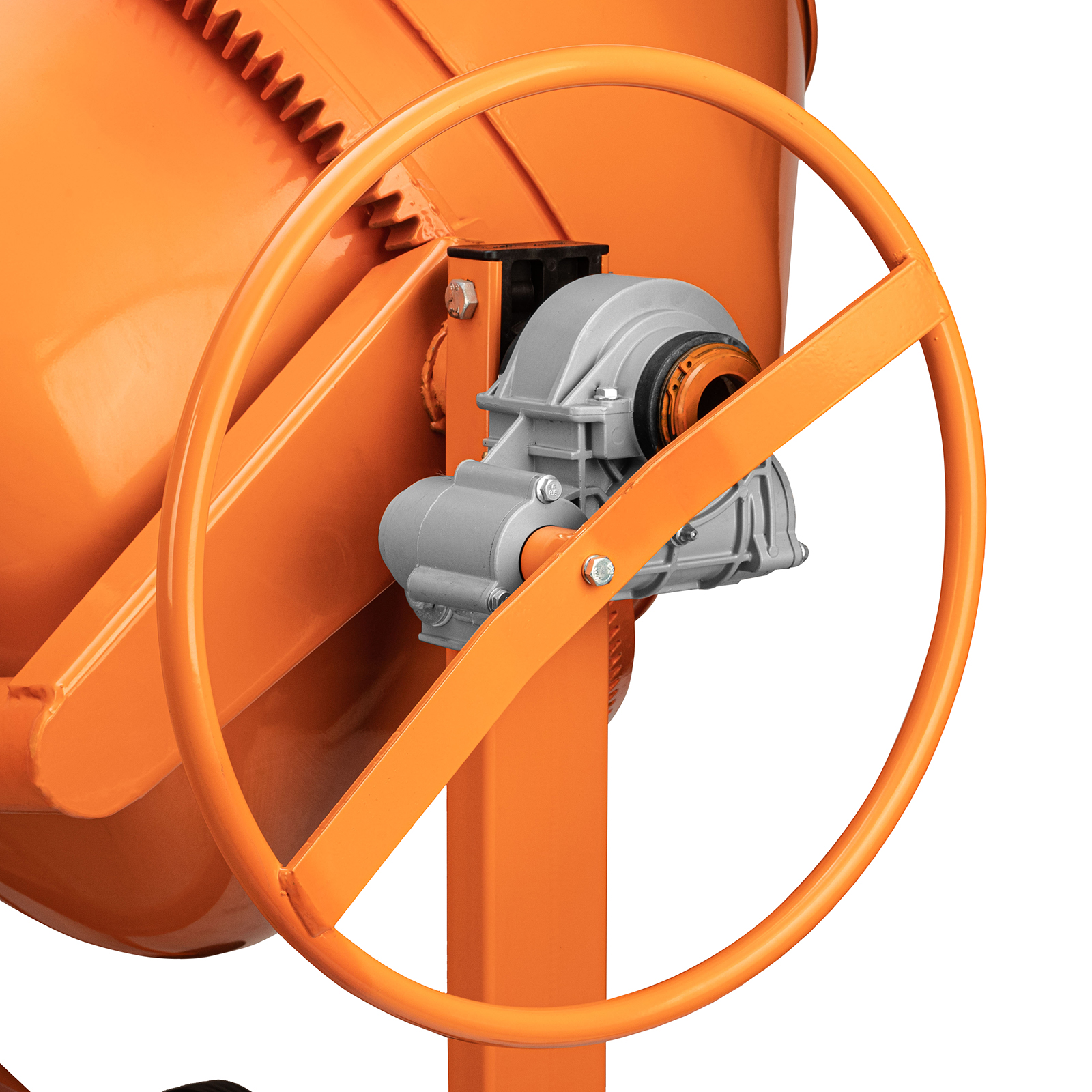 - Устойчивость — металлическая ножка с упором не дает бетоносмесителю опрокинуться во время работы.