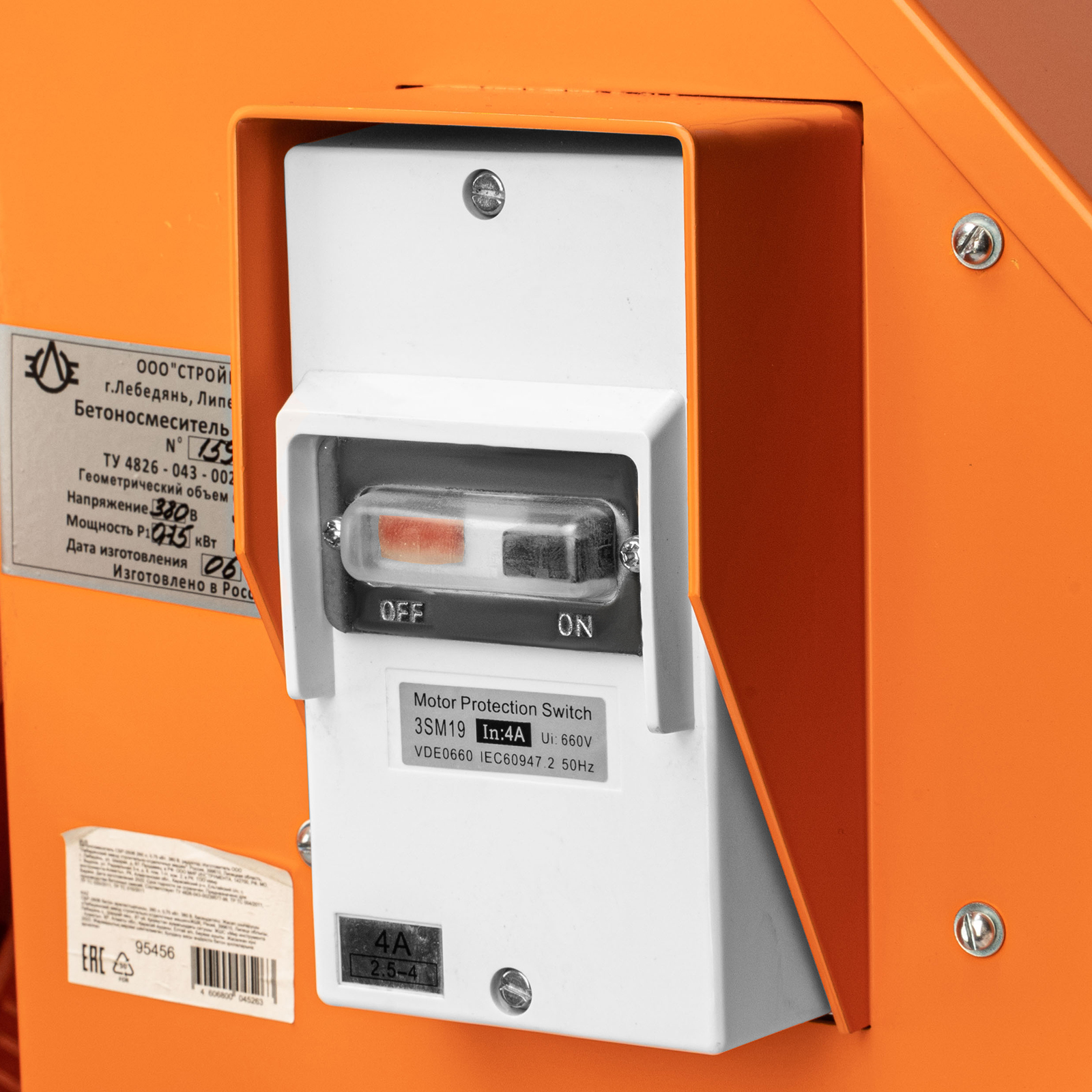 - Разборная конструкция — бетоносмеситель удобно хранить и транспортировать, а съемный сетевой кабель легко заменить в случае необходимости.