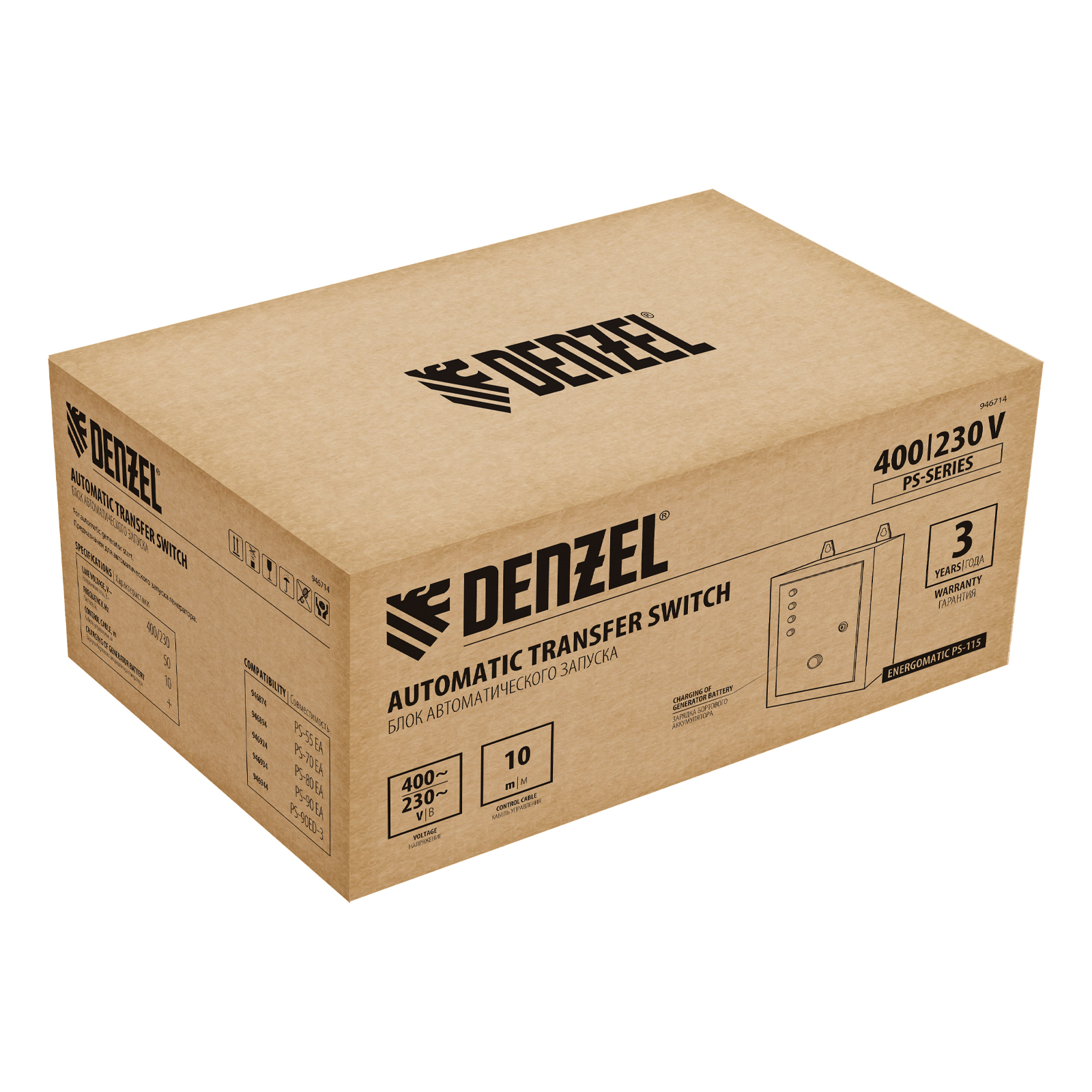 Блок автоматического запуска Denzel Energomatic PS 115 946714 включает генератор в случае прекращения подачи электроэнергии в частных домах, дачных коттеджах, на небольших предприятиях и строительных объектах. Как только напряжение бытовой сети стабилизируется, блок АВР отключается. Подходит к генераторным установкам Denzel серии PS: 55 EA (арт. 946874), 70 EA (946894), 80 EA (946924), 90 EA (946934), 95EA-PRO (946935) и 90ED-3 (946944). Максимальная мощность составляет 10 кВт.
