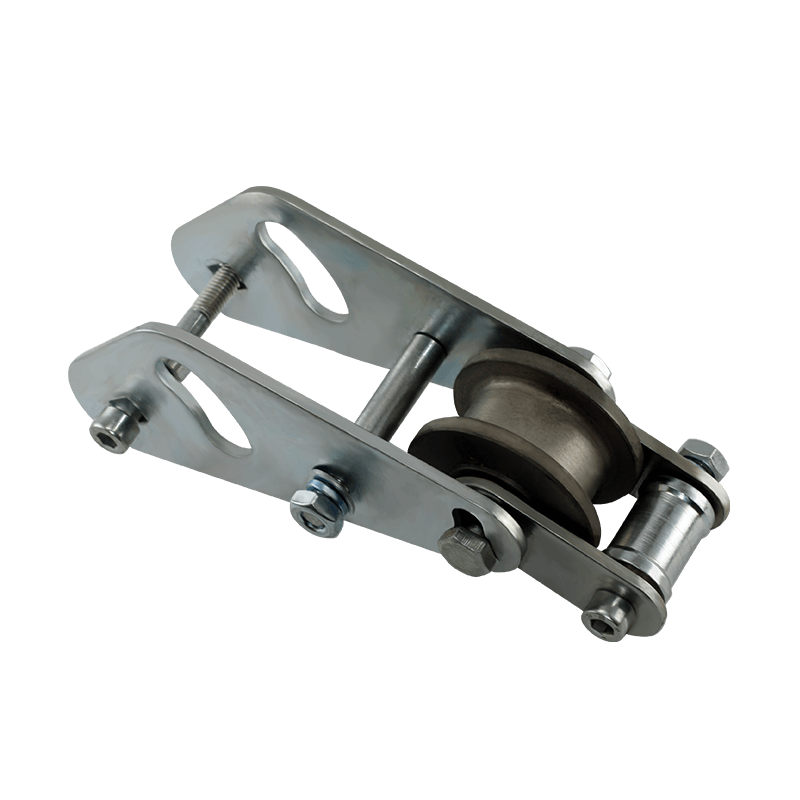 Блок ловителя для https://idev.inolta.local/1" rel="noopener noreferrer" target="_blank">фасадного подъемника ZLP-630. Состоит из большого и малого роликов и скобы, скрепляющей их. Является частью аварийного тормоза (ловителя).