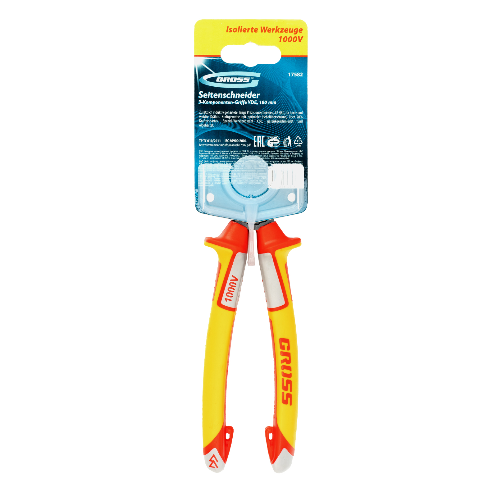 Бокорезы, диэлектрические рукоятки, до 1000 В, трехкомпонентные рукоятки, 180 мм Gross в Москве