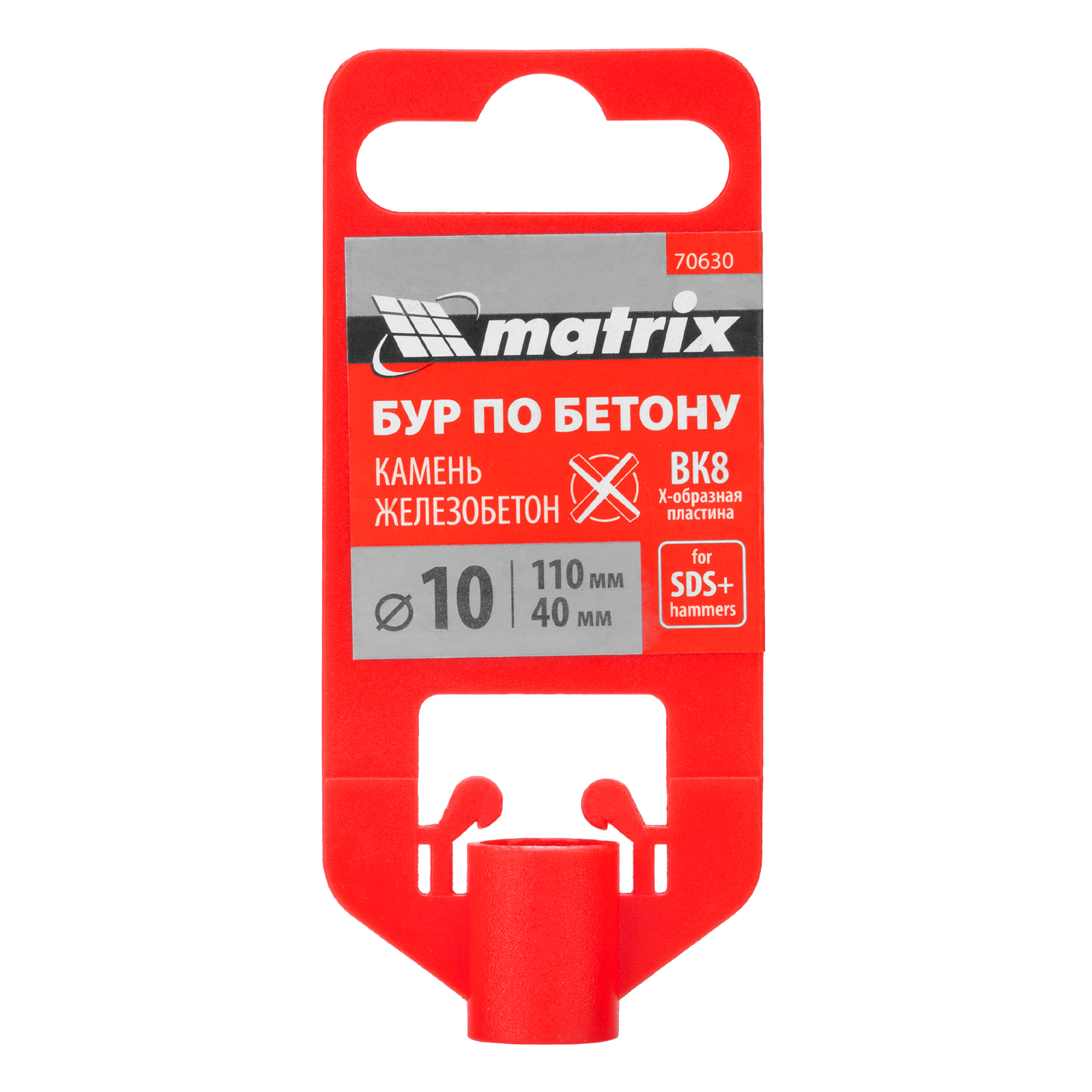 Бур по бетону, 10 x 110 мм, SDS Plus c крестовой пластиной Matrix