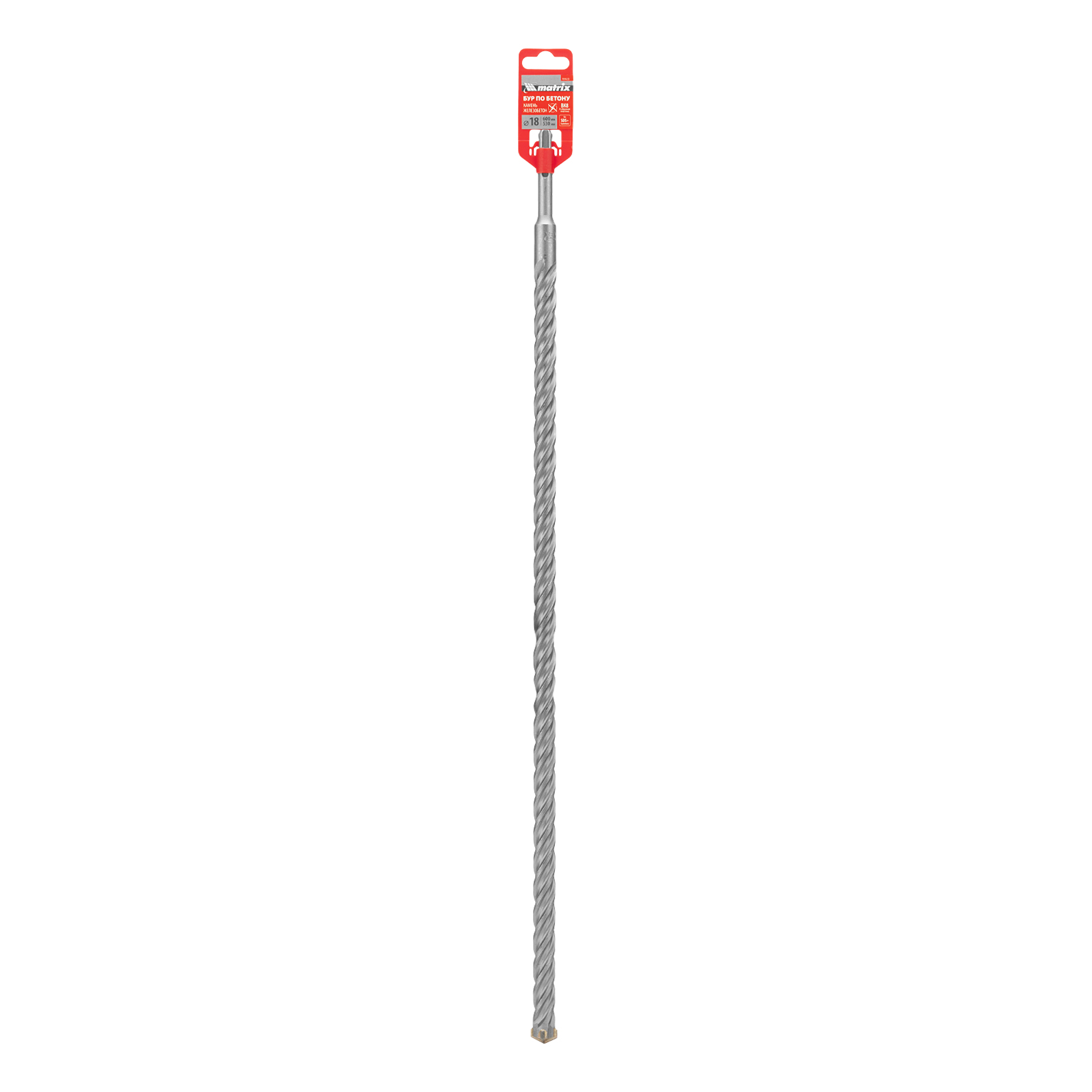 Бур по бетону Matrix 70923 длиной 600 мм, с хвостовиком SDS-plus и крестовой пластиной, предназначен для получения отверстий диаметром 18 мм в бетоне, камне и кирпиче. Крестовая пластина обеспечивает эффективную работу с твердыми материалами, в том числе армированным бетоном. Бур устанавливается в патрон перфоратора и используется во время проведения строительных работ.