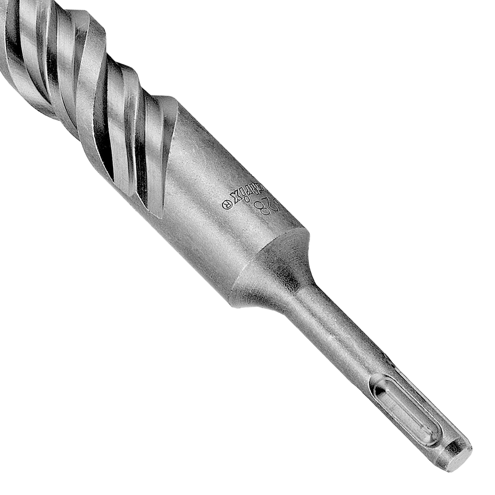 - Увеличенная площадь сечения корпуса способствует снижению вибраций при сверлении и предотвращает поломку бура.