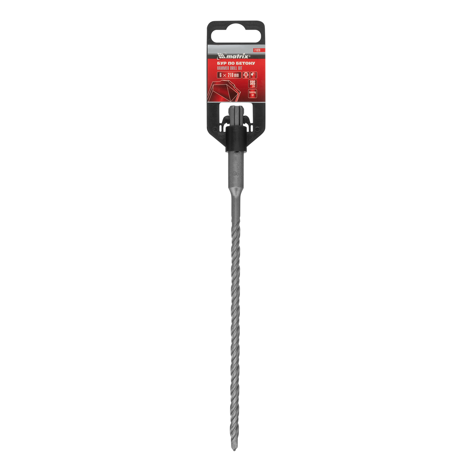 Бур по бетону Matrix 71026, 6 х 210 мм, SDS PLUS предназначен для установки на перфоратор и позволяет получать отверстия диаметром 6 мм в бетоне, камне и кирпиче. Он эффективно решает поставленные задачи благодаря режущей пластине из высокотвердого сплава карбида вольфрама ВК8 твердостью 80-90 HRC.