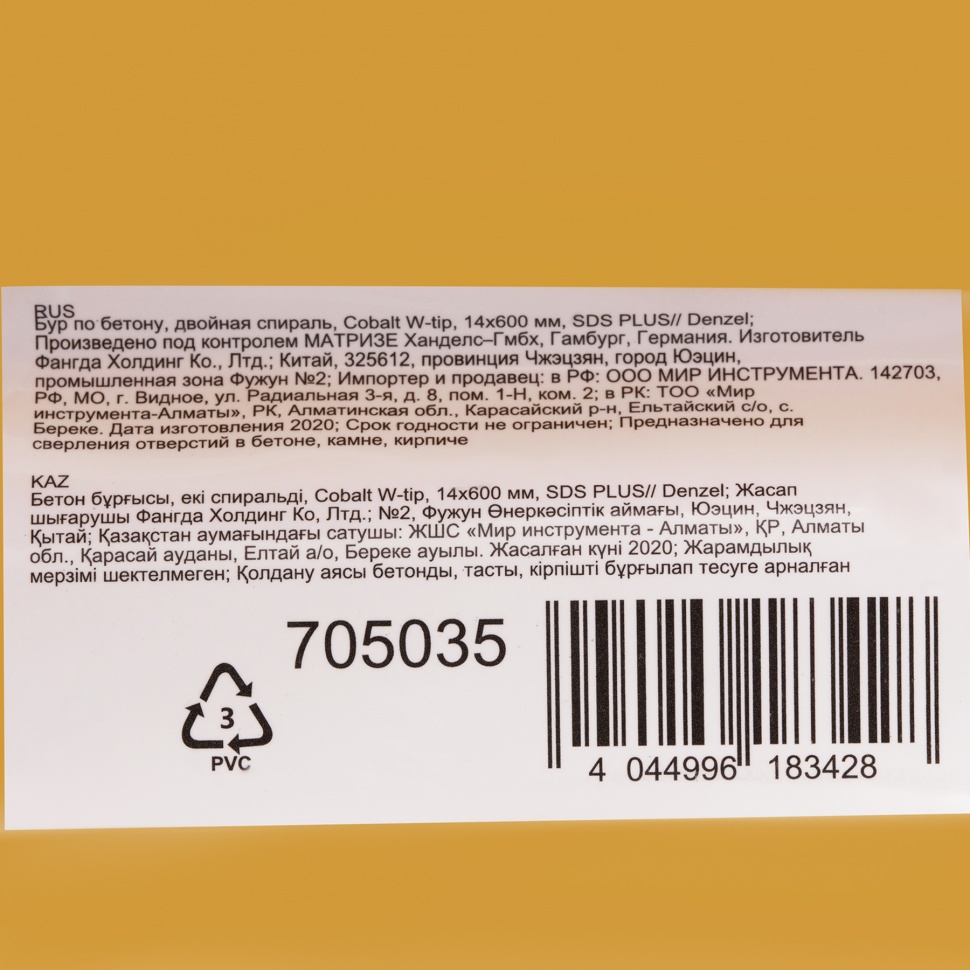 Бур по бетону Denzel Cobalt W-tip 705035 размером 14 х 600 мм, с хвостовиком SDS-plus и двойной спиралью, предназначен для сверления бетона, кирпича и камня. Используется в качестве оснастки для перфораторов с патроном SDS-plus. Бур оптимален для проведения строительных, ремонтных, монтажных работ.