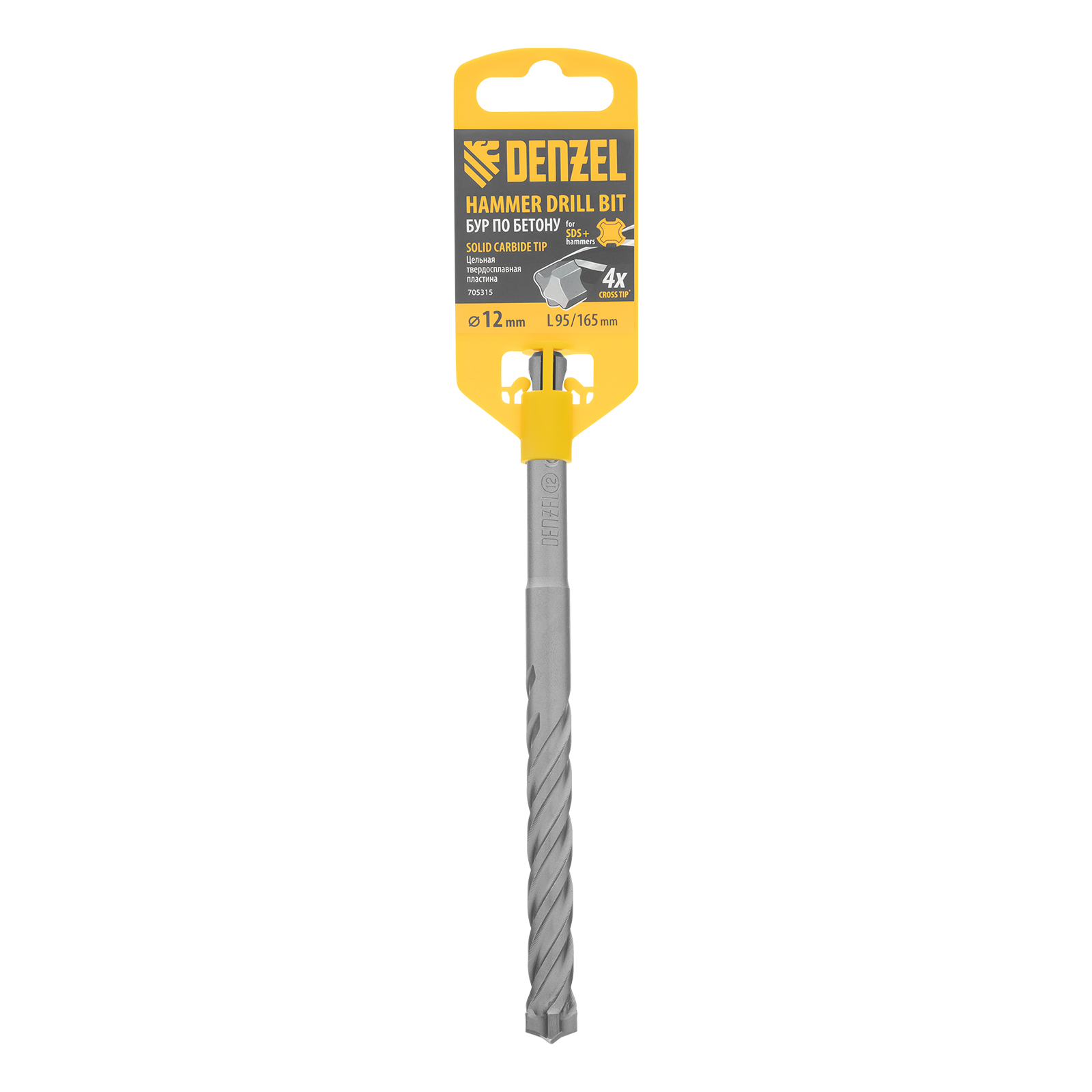 Бур по бетону, цельная крестовая пластина, 12x165 мм, SDS PLUS Denzel в Москве