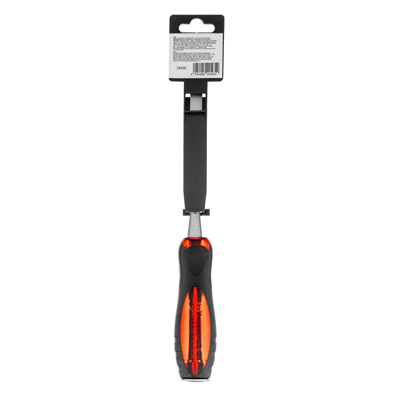 - Продуманная конструкция — металлический стержень, проходящий сквозь рукоятку, повышает прочность и долговечность инструмента.