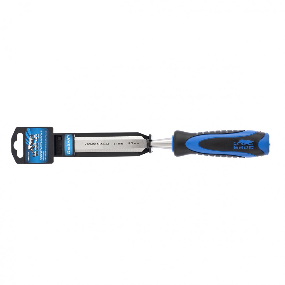 Плоское долото-стамеска Барс 24645 с шириной режущей части 20 мм, с двухкомпонентной рукояткой и металлическим затыльником, предназначено для выборки прямоугольных пазов, снятия фасок, обработки шиповых соединений и выполнения других столярно-плотницких работ. Используется для работы с массивом дерева любой твердости. По затыльнику рукоятки можно наносить удары киянкой или небольшим молотком, поэтому инструмент легко погружается в древесину и обеспечивает аккуратный ровный контур среза.