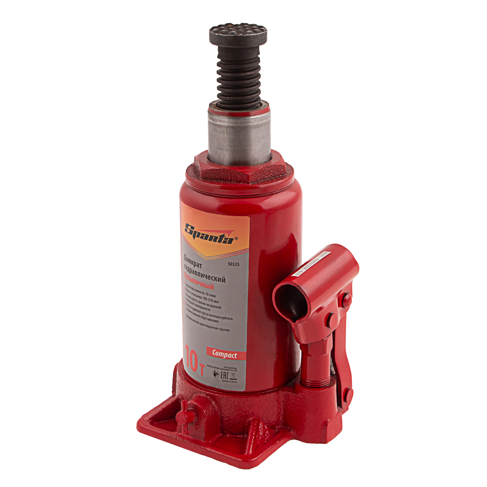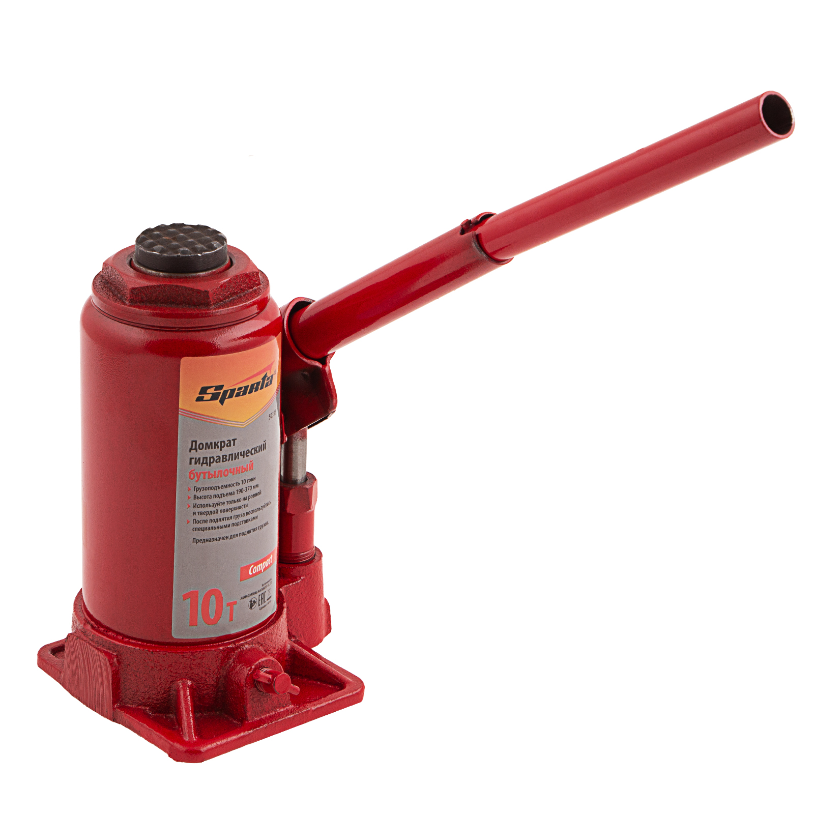 Домкрат гидравлический бутылочный 10 т, h подъема 190-370 мм Sparta Compact в Москве