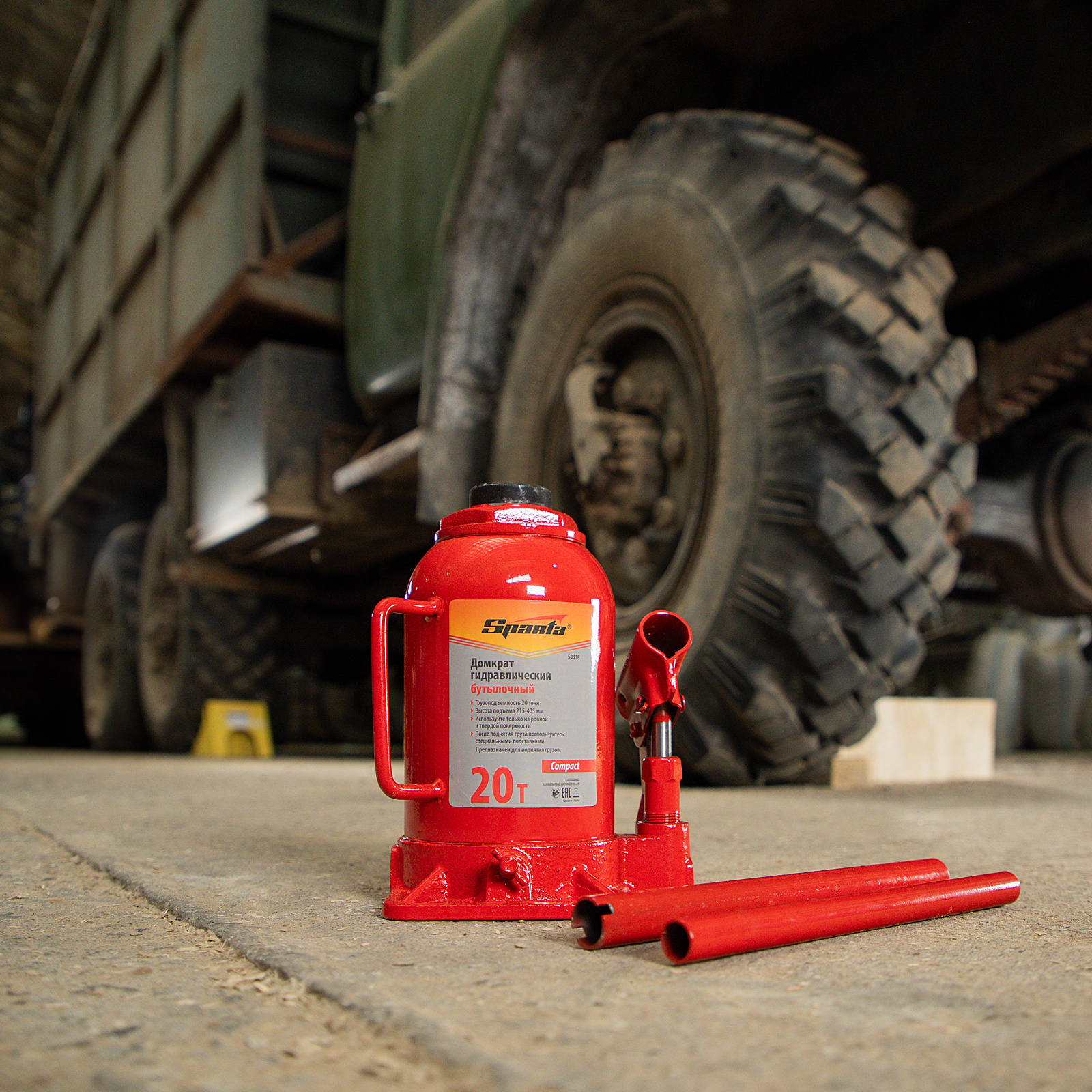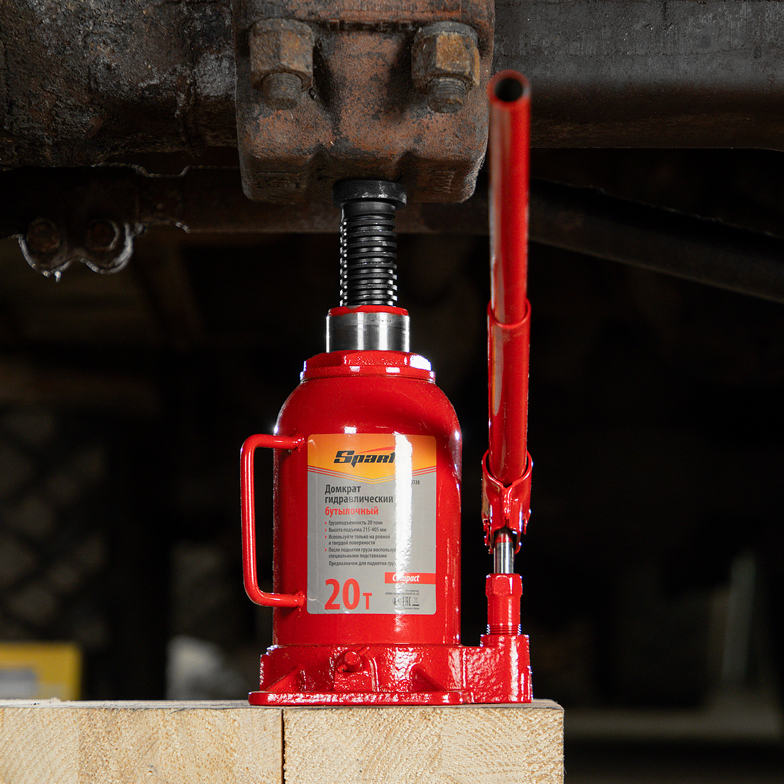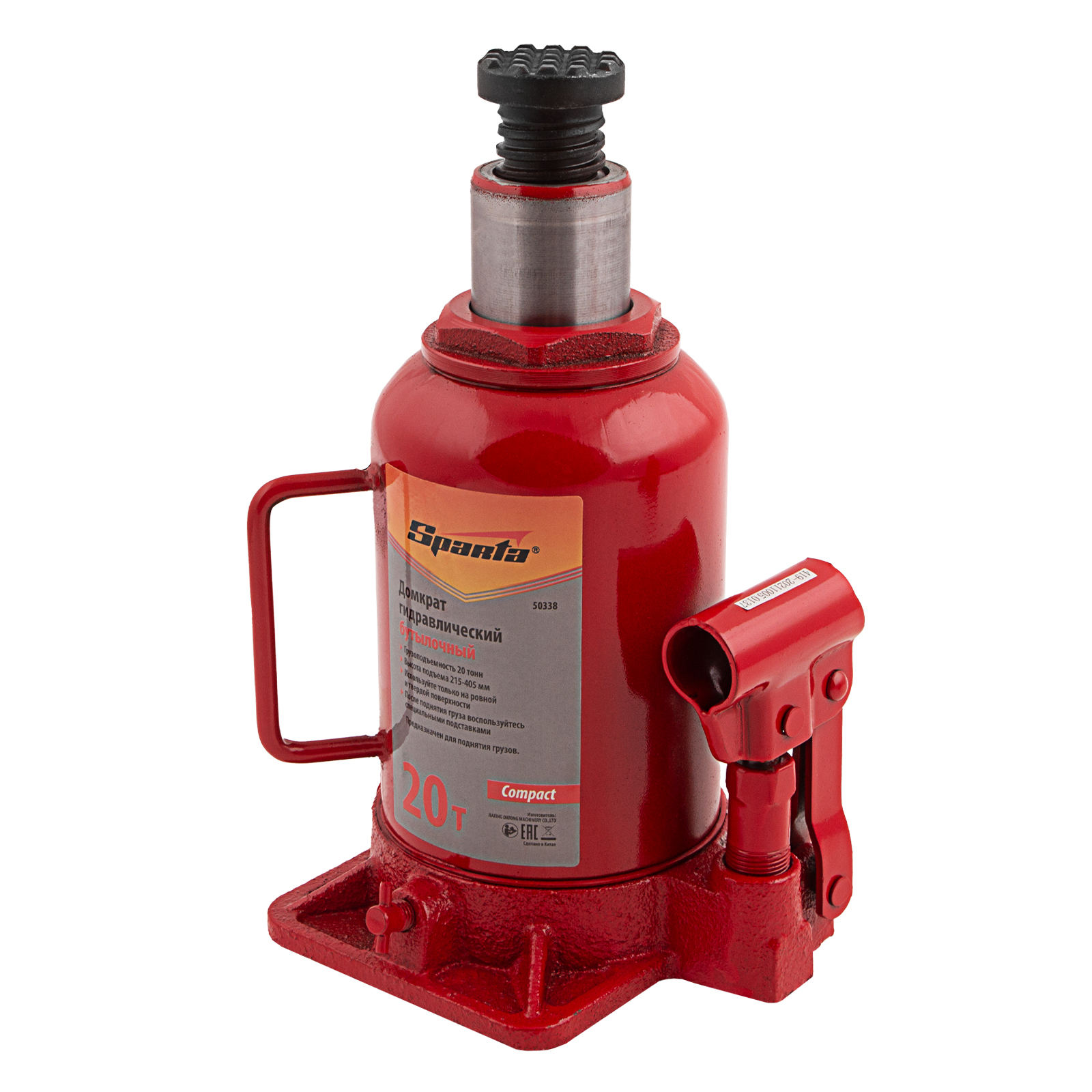 Домкрат гидравлический бутылочный 20 т, h подъема 215-405 мм Sparta Compact в Москве