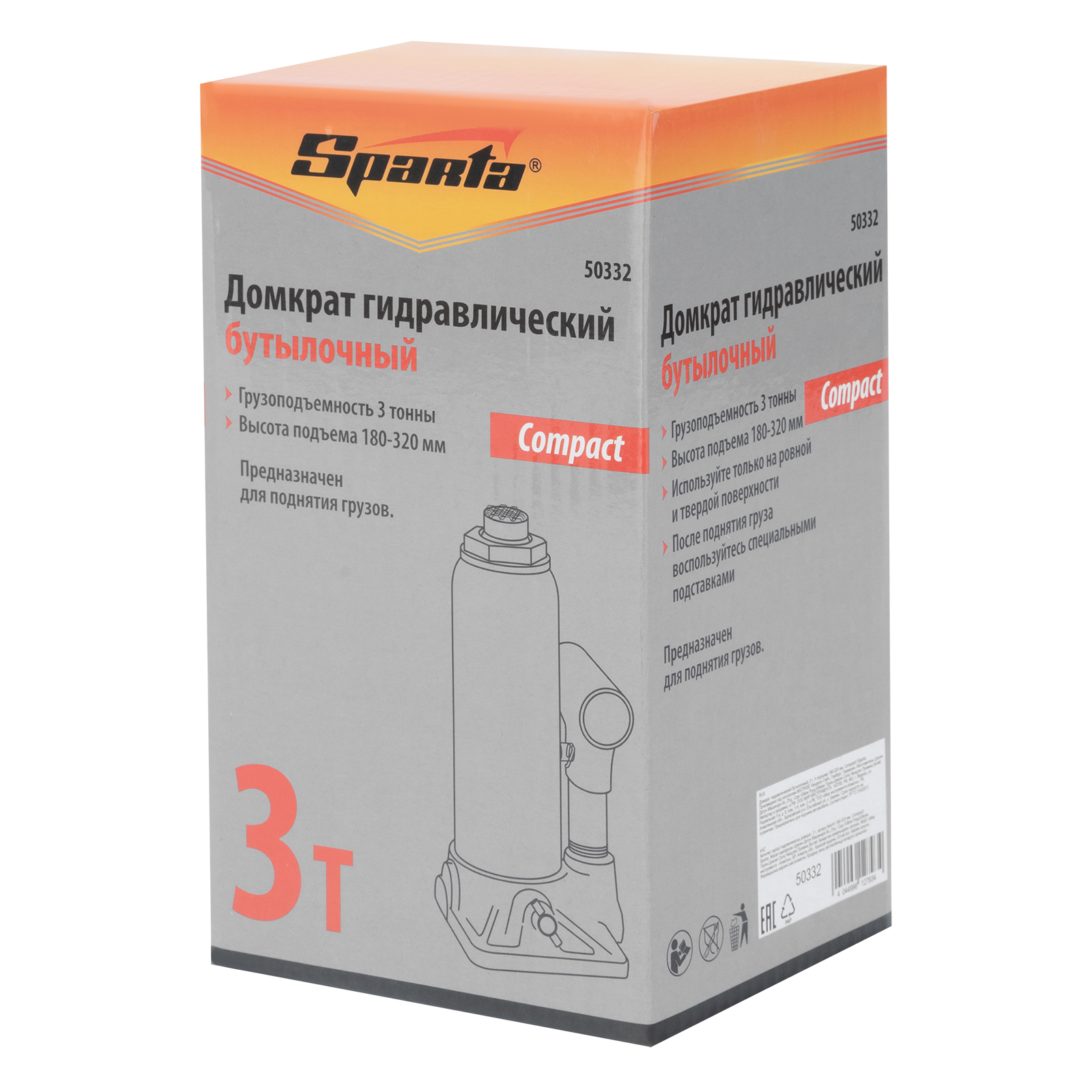 Домкрат гидравлический бутылочный 3т, h подъема 180-320 мм Sparta Compact в Москве