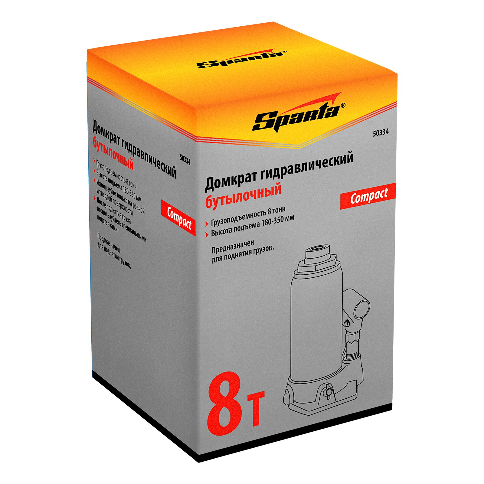 Домкрат гидравлический бутылочный 8 т, h подъема 180-350 мм Sparta Compact в Москве