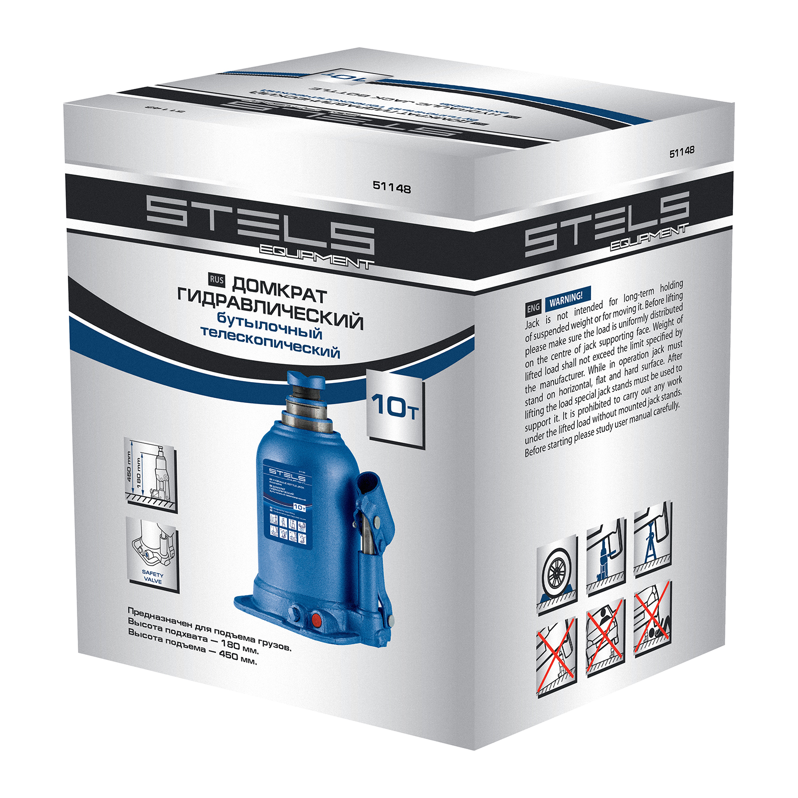 Гидравлический бутылочный телескопический домкрат Stels 51148 используется для поднятия грузов весом до 10 т с на высоту 180-450 мм. Не требует больших усилий и оптимален для автомобилей с большим клиренсом. Домкрат можно использовать в гараже для самостоятельного ремонта машины или в автосервисе для решения профессиональных задач.