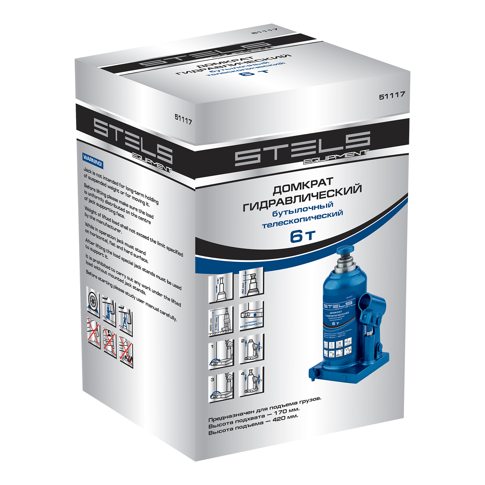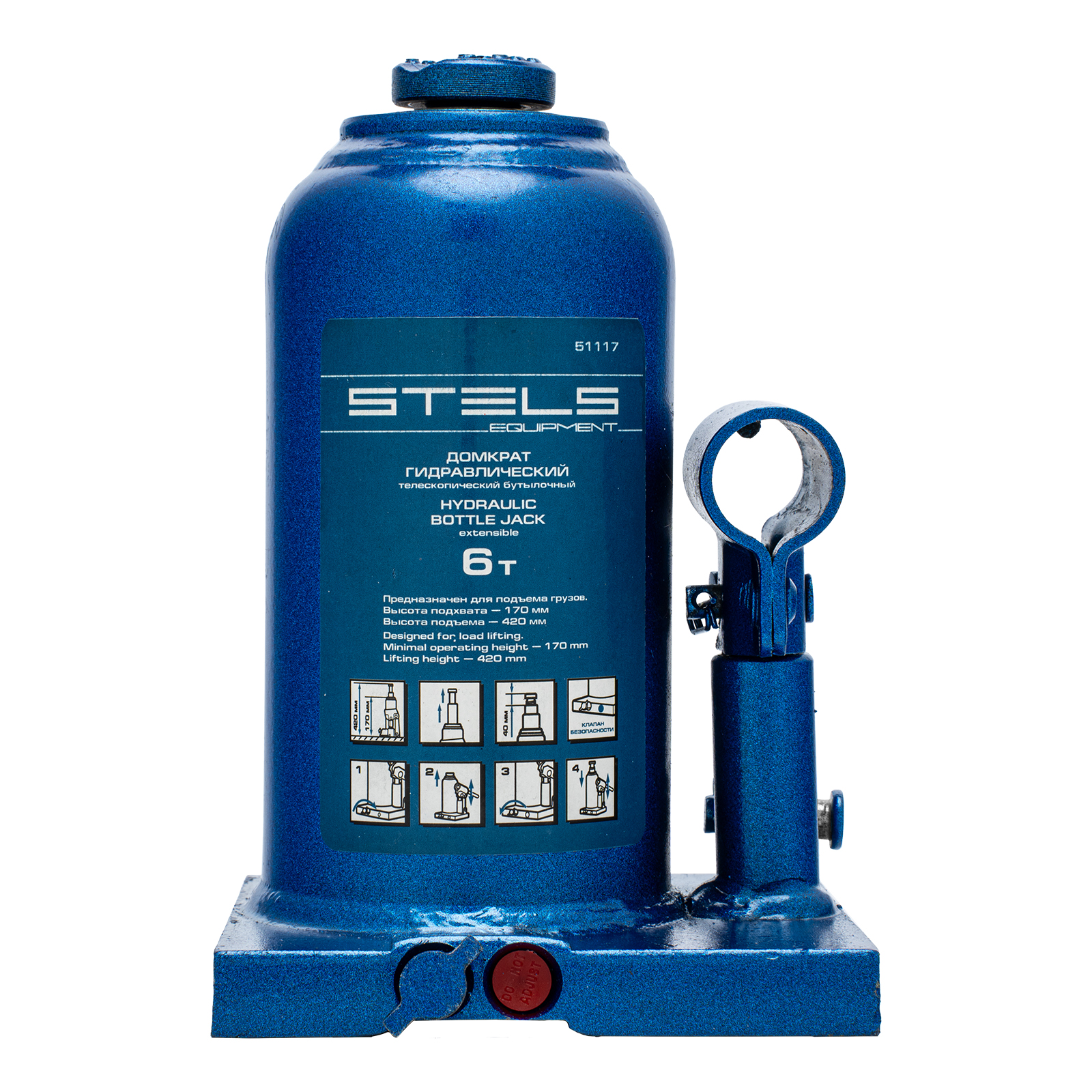Гидравлический бутылочный телескопический домкрат Stels 51117 используется для поднятия грузов весом до 6 т с на высоту 170-420 мм. Не требует больших усилий и оптимален для автомобилей с большим клиренсом. Домкрат можно использовать в гараже для самостоятельного ремонта машины или в автосервисе для решения профессиональных задач.