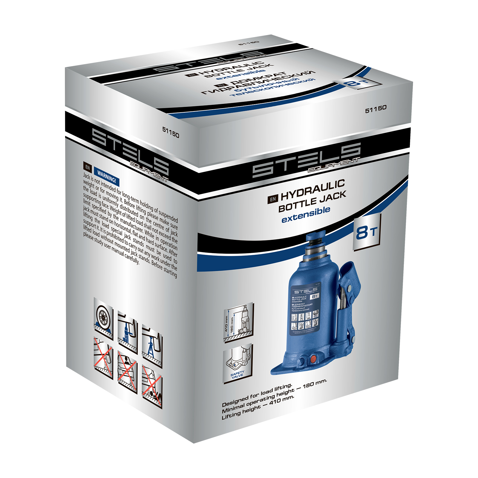 Домкрат гидравлический бутылочный Stels 51150, телескопический, используется для поднятия грузов весом до 8 т с на высоту 180-410 мм. Не требует больших усилий и оптимален для автомобилей с большим клиренсом. Домкрат можно использовать в гараже для самостоятельного ремонта машины или в автосервисе для решения профессиональных задач.