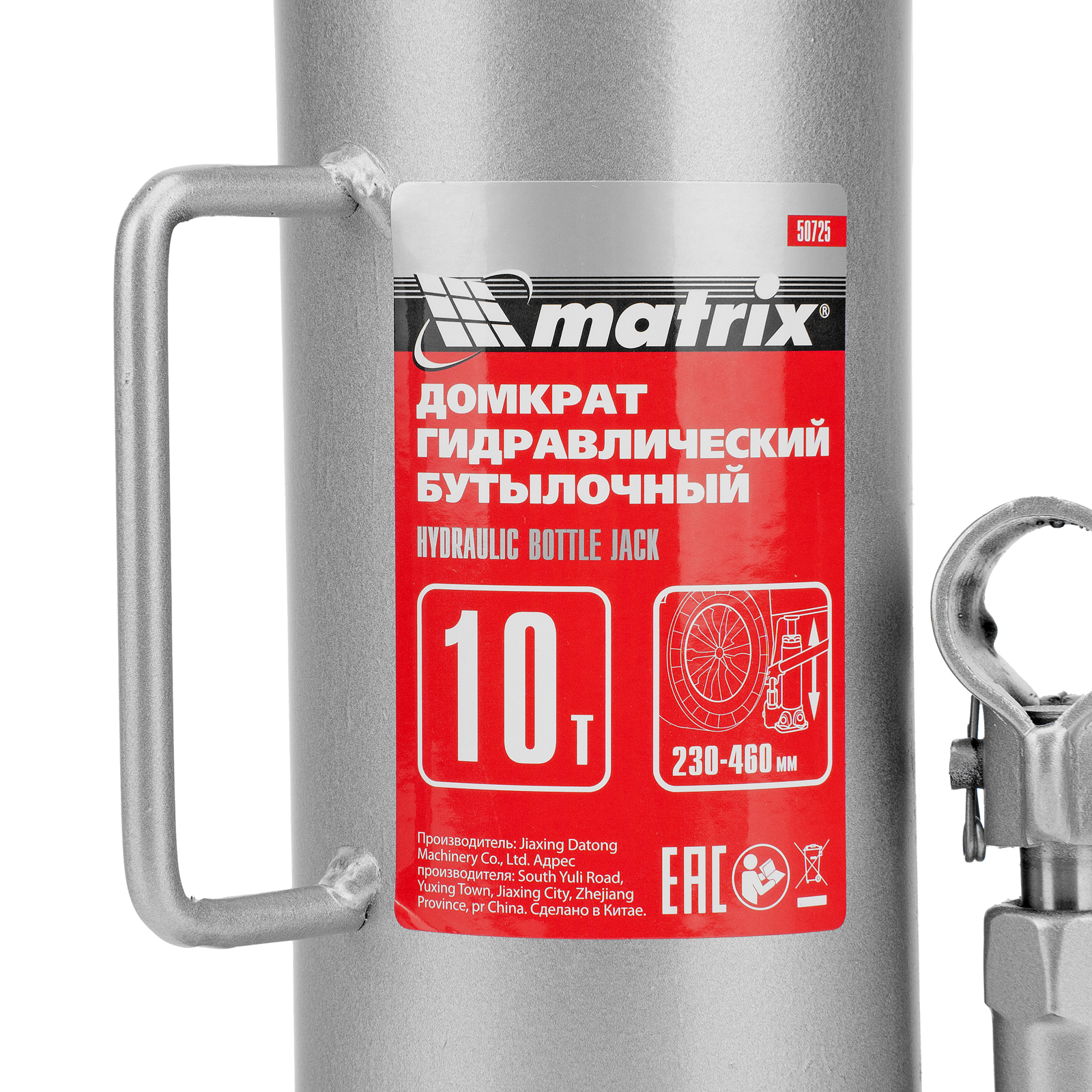 Домкрат гидравлический бутылочный, 10 т, высота подъема 230-460 мм Matrix в Москве