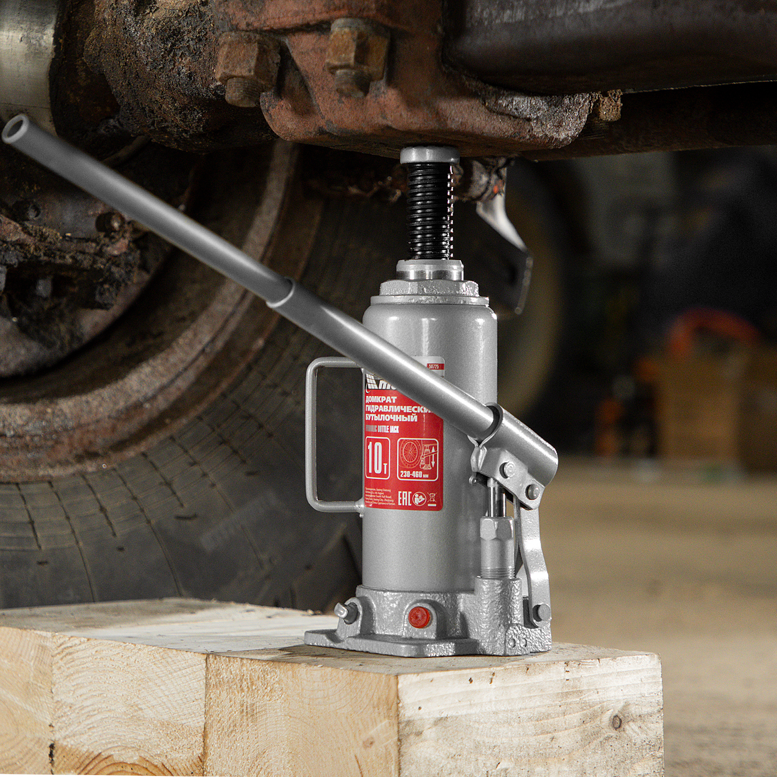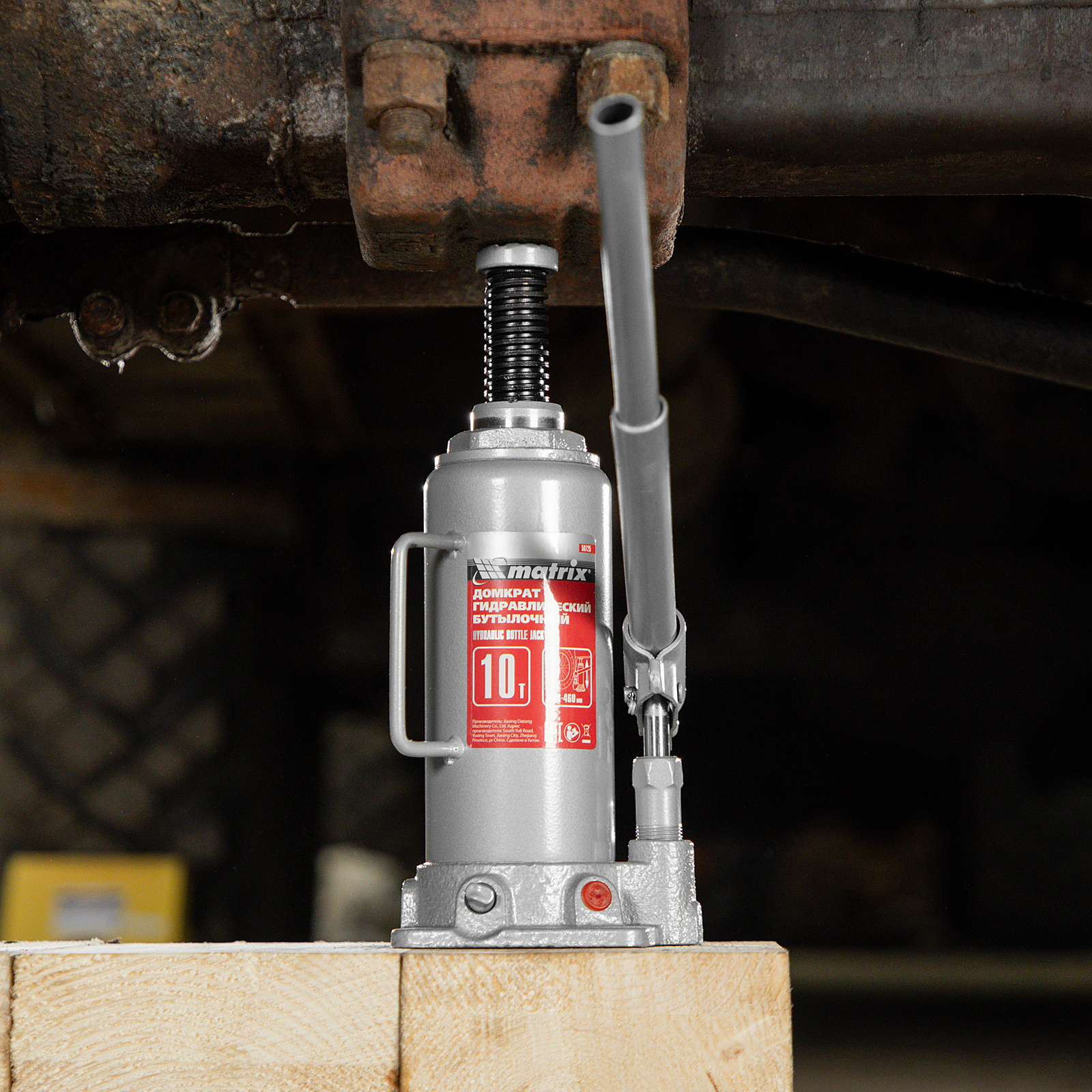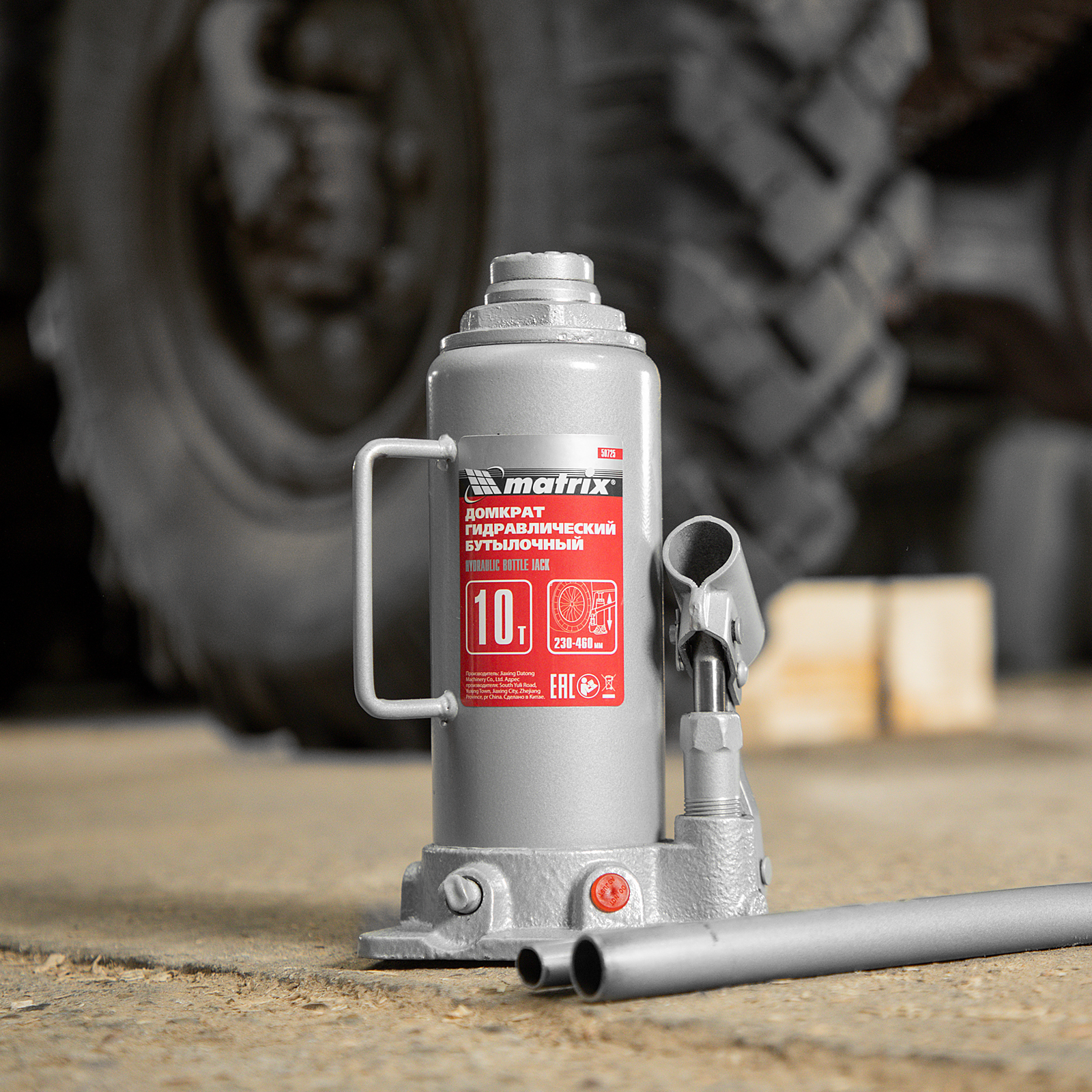 Домкрат гидравлический бутылочный Matrix 50725 используется для поднятия грузов массой до 10 т на высоту 230-460 мм. Подходит для автомобилей с высоким клиренсом. Домкрат будет полезен автолюбителям в гараже и дороге, а также сотрудникам СТО.