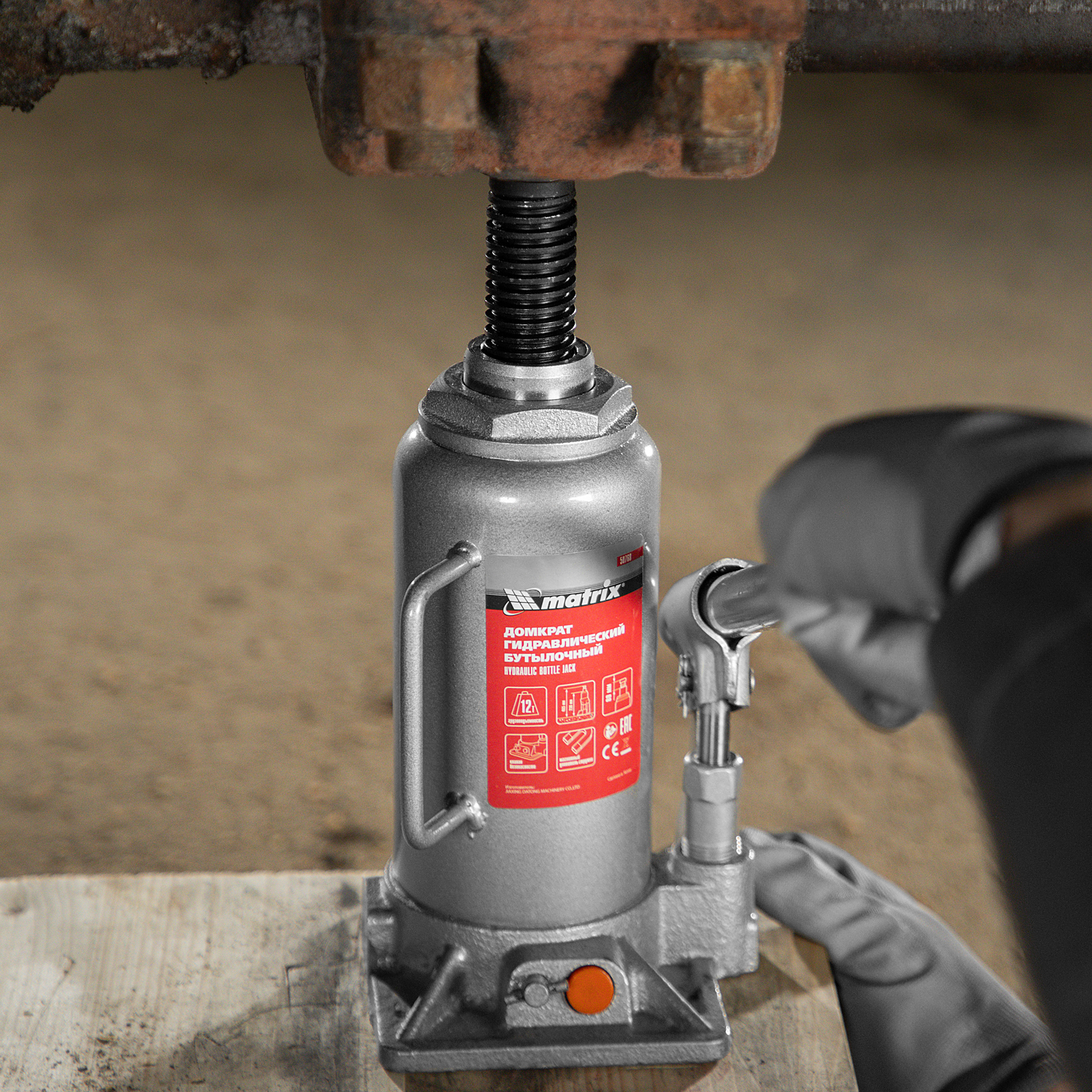 Домкрат гидравлический бутылочный, 12 т, h подъема 230-465 мм Matrix в Москве
