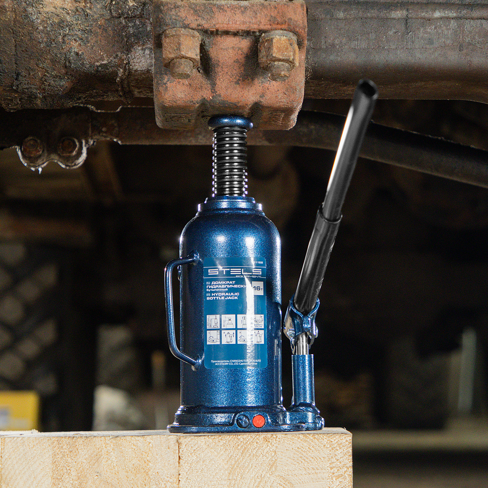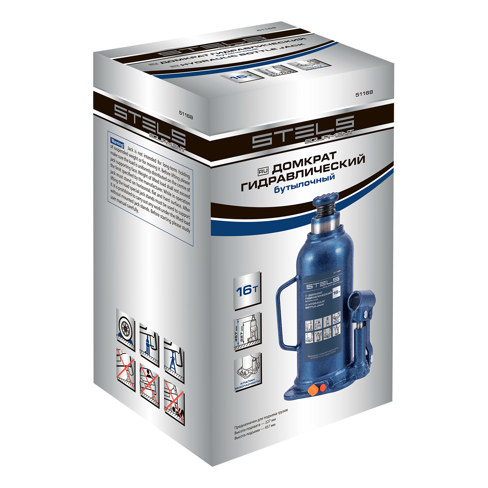 Гидравлический бутылочный домкрат Stels 51168 применяется для быстрого поднятия грузов весом до 16 т на высоту 227-457 мм. Оптимален для автомобилей с большим клиренсом. Домкрат будет полезен автолюбителям и профессионалам для ремонта транспортного средства.
