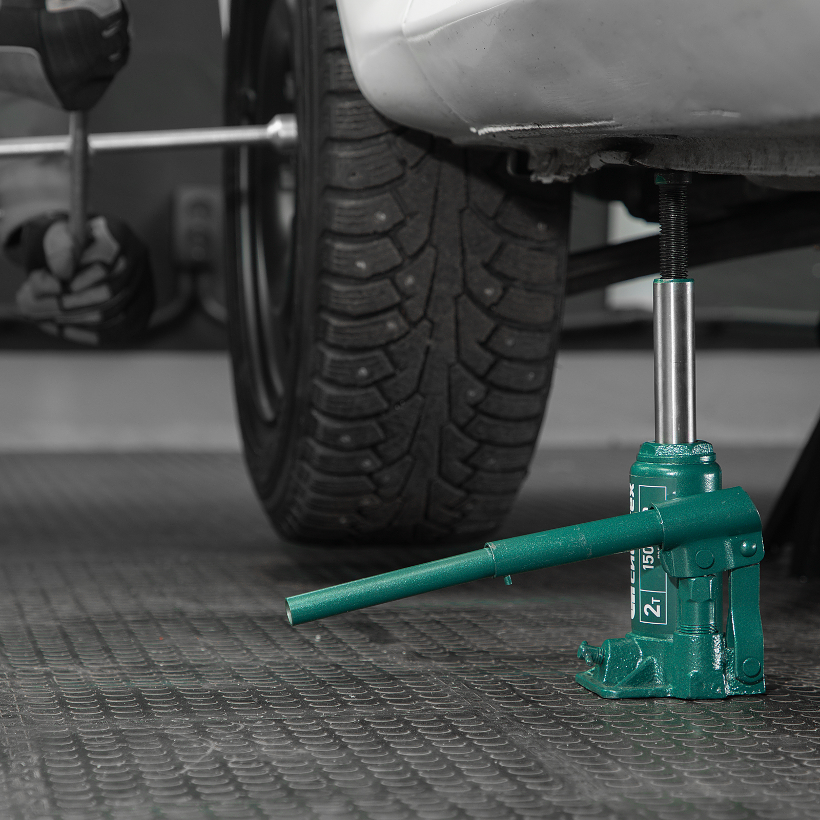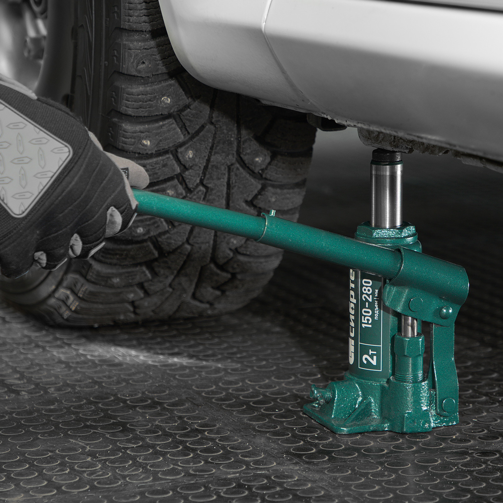 - Удобное хранение и транспортировка — домкрат весит всего 1,9 кг, а благодаря съемному рычагу не занимает много места.