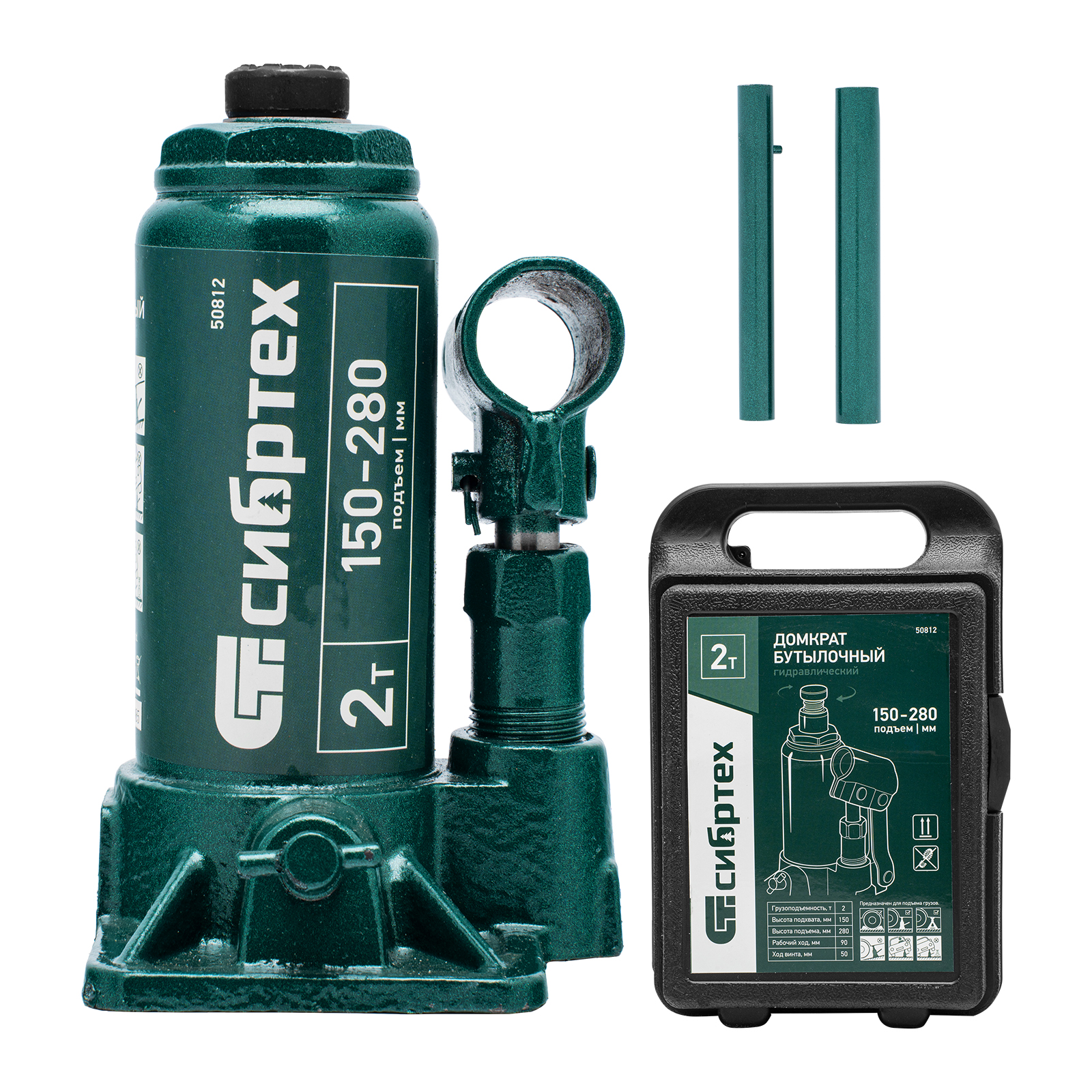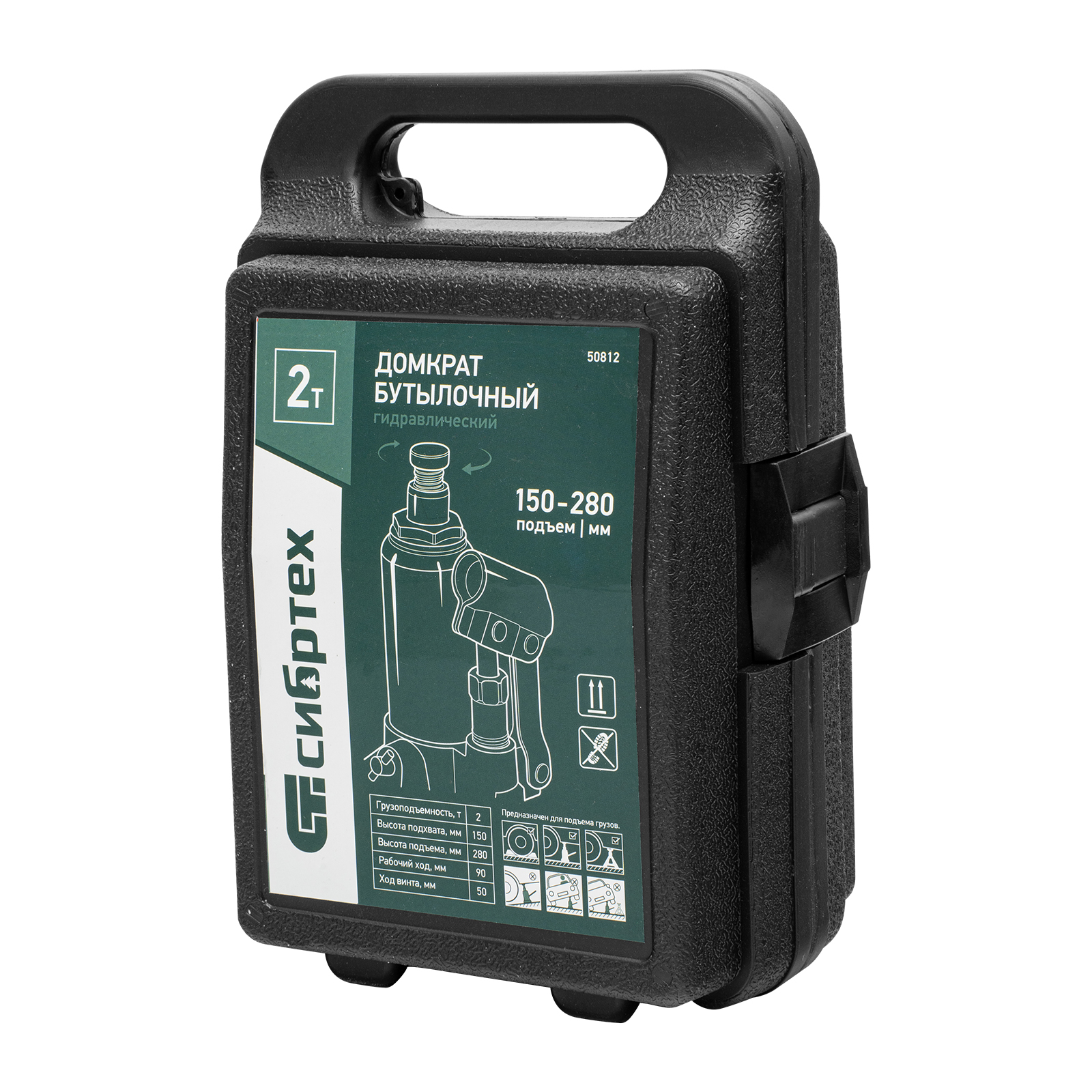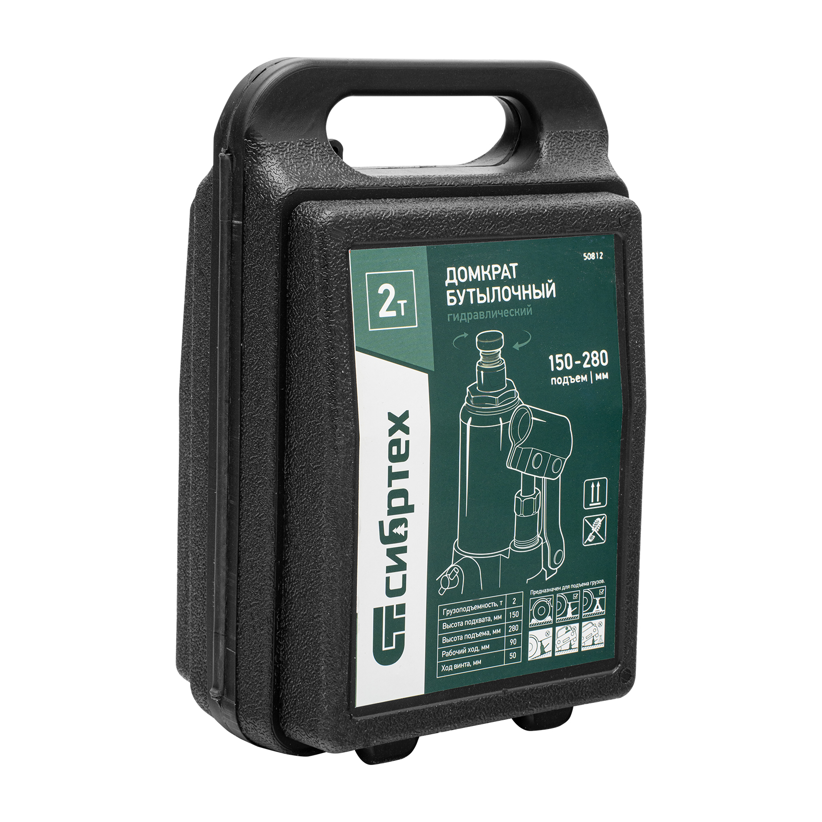 Домкрат гидравлический бутылочный, 2 т, 150-280 мм, в пласт. кейсе Сибртех в Москве