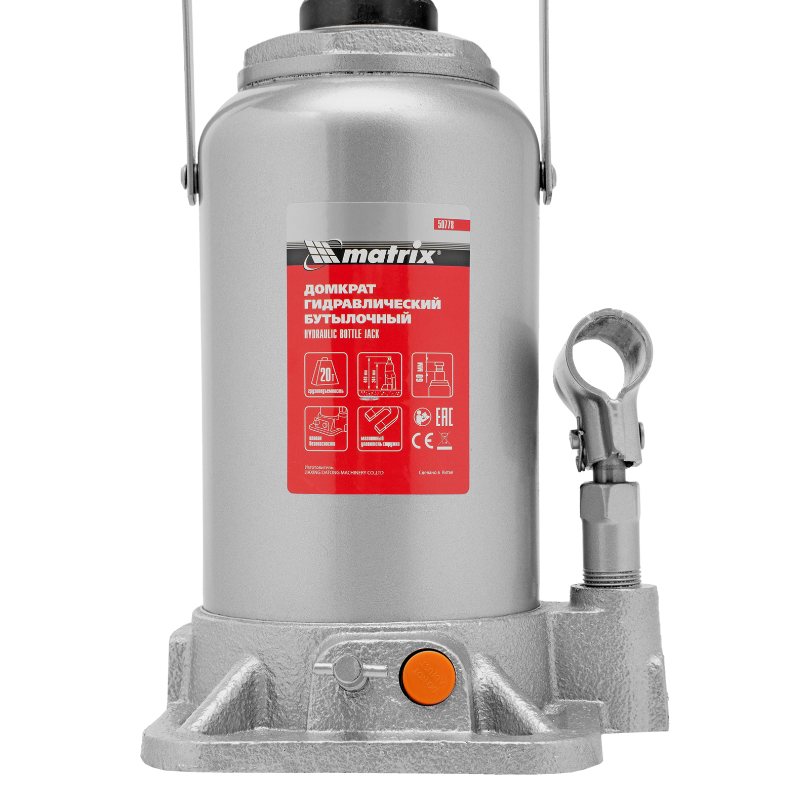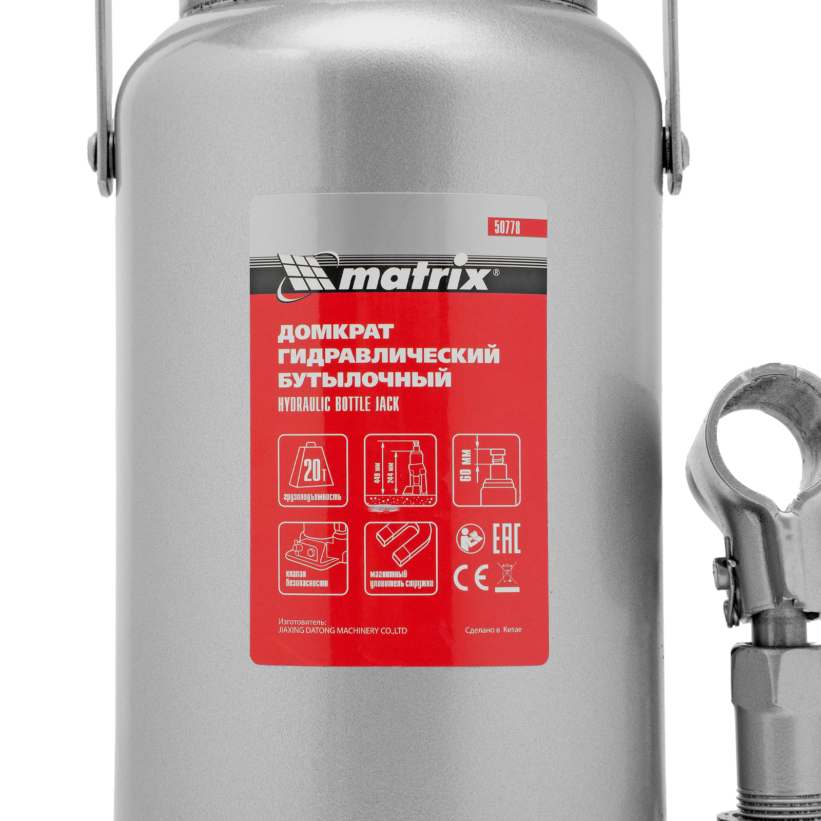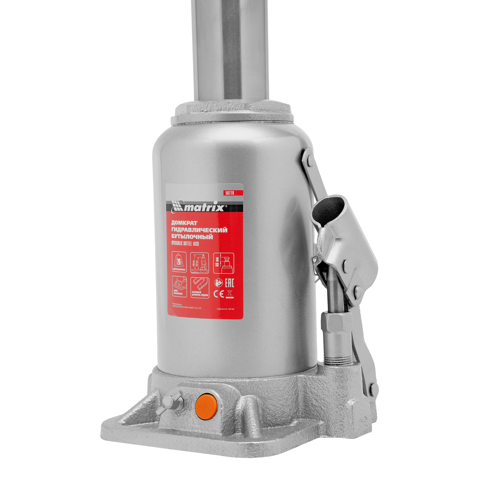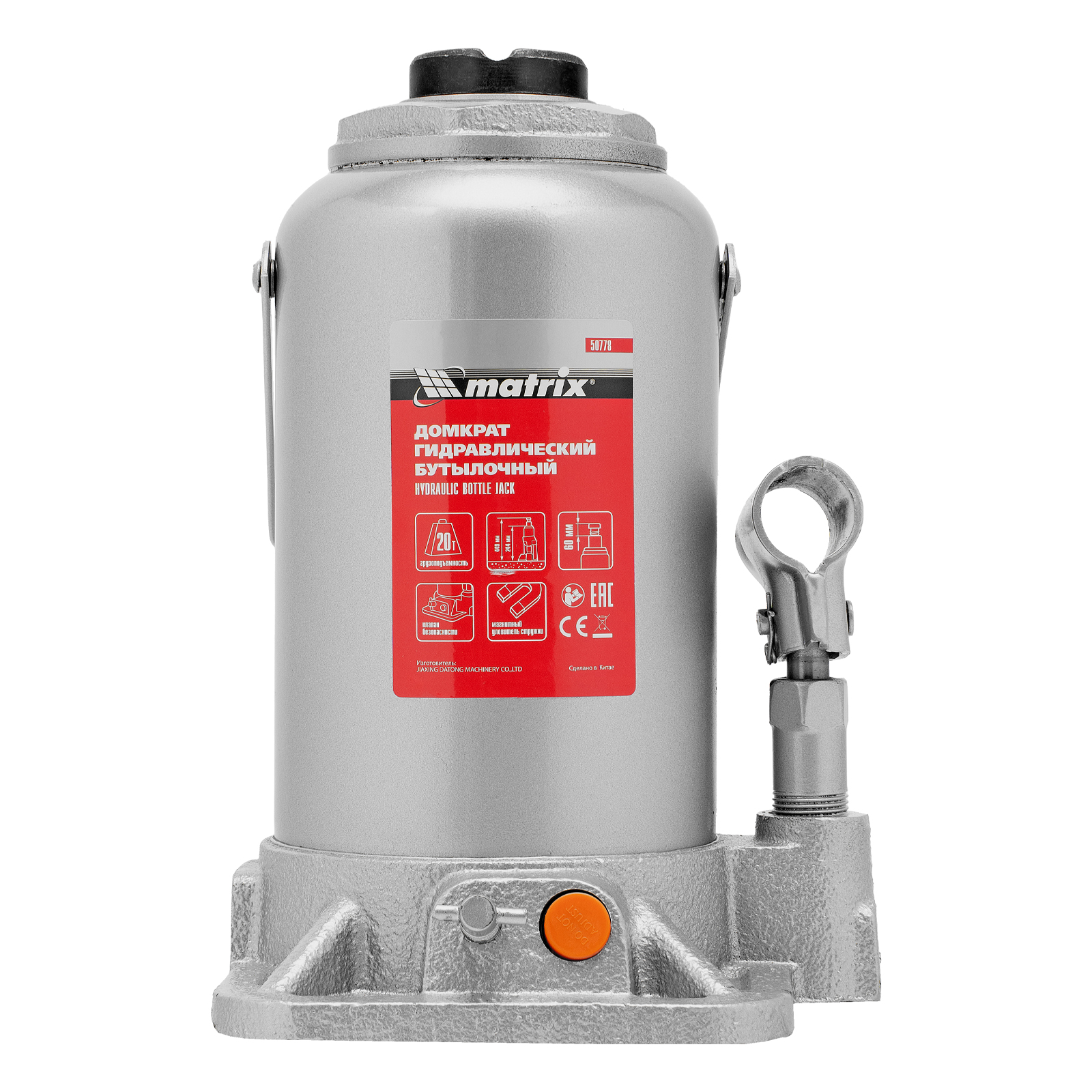 Гидравлический бутылочный домкрат Matrix 50778 поднимает грузы весом до 20 т на высоту 244-449 мм и может использоваться в гараже, на станции ТО или строительной площадке. Встроенный магнитный уловитель собирает металлическую стружку, образующуюся в процессе работы, что защищает домкрат от преждевременного износа.