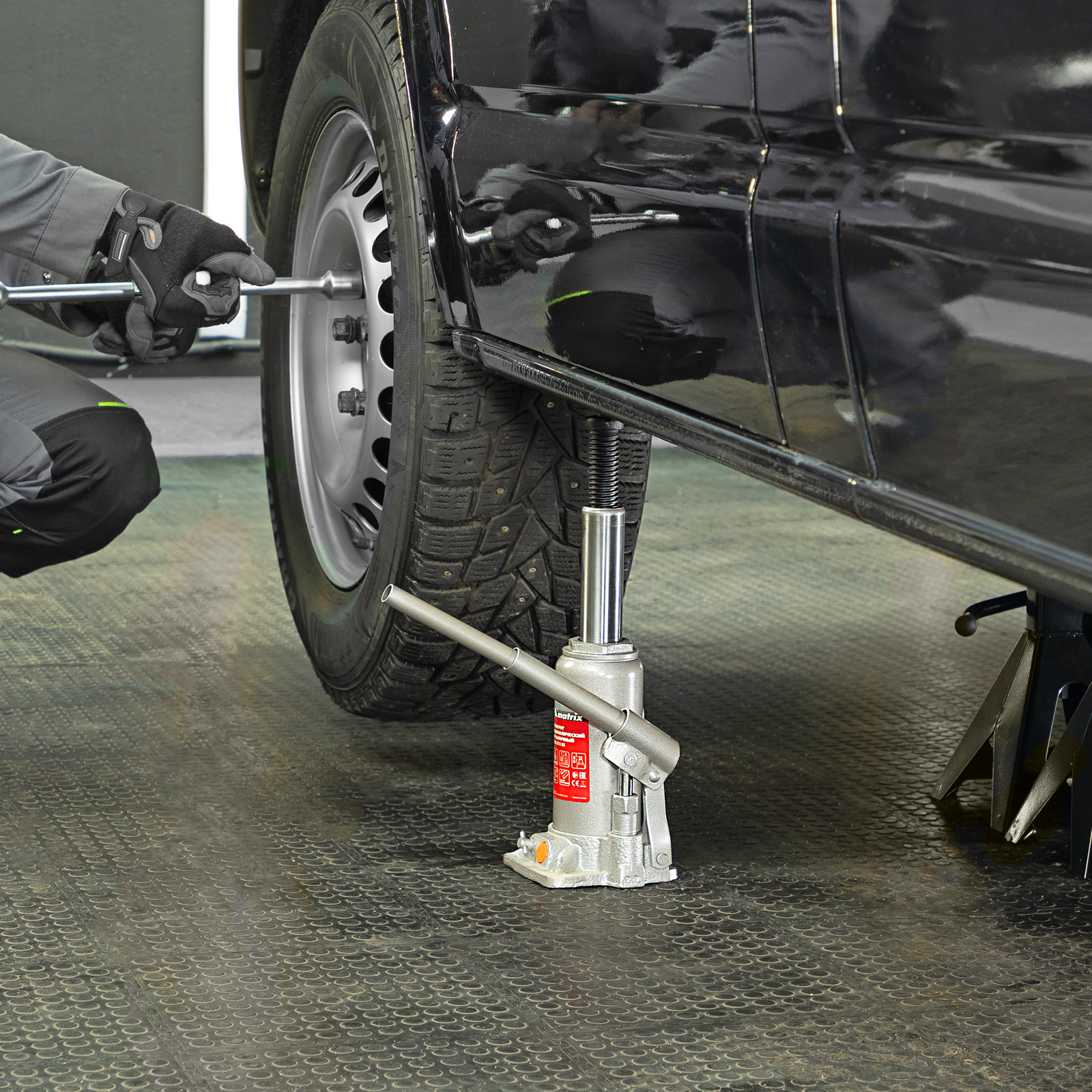 - Безопасность — предохранительный клапан защищает домкрат от перегрузок, не позволяя поднимать автомобиль массой более 5000 кг.