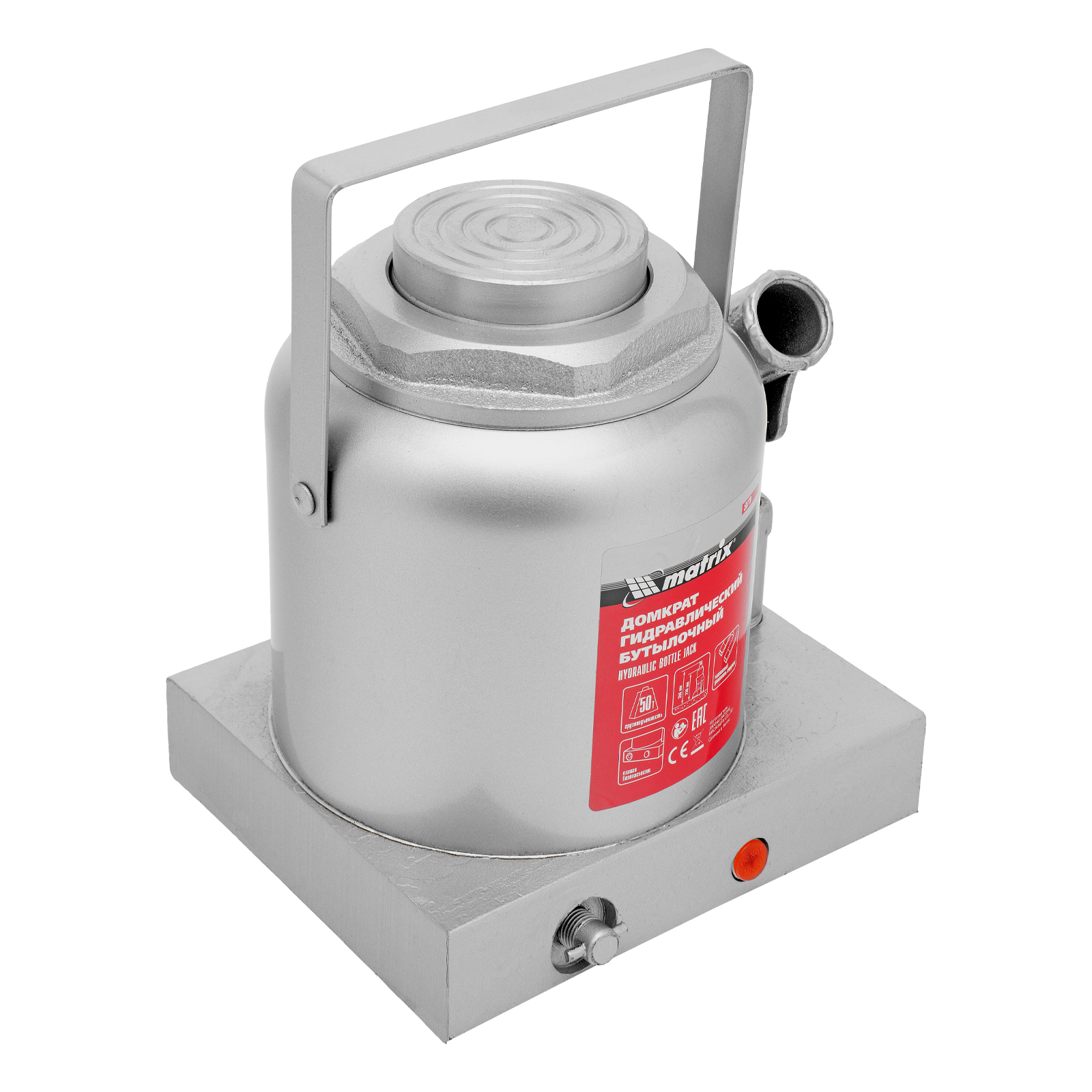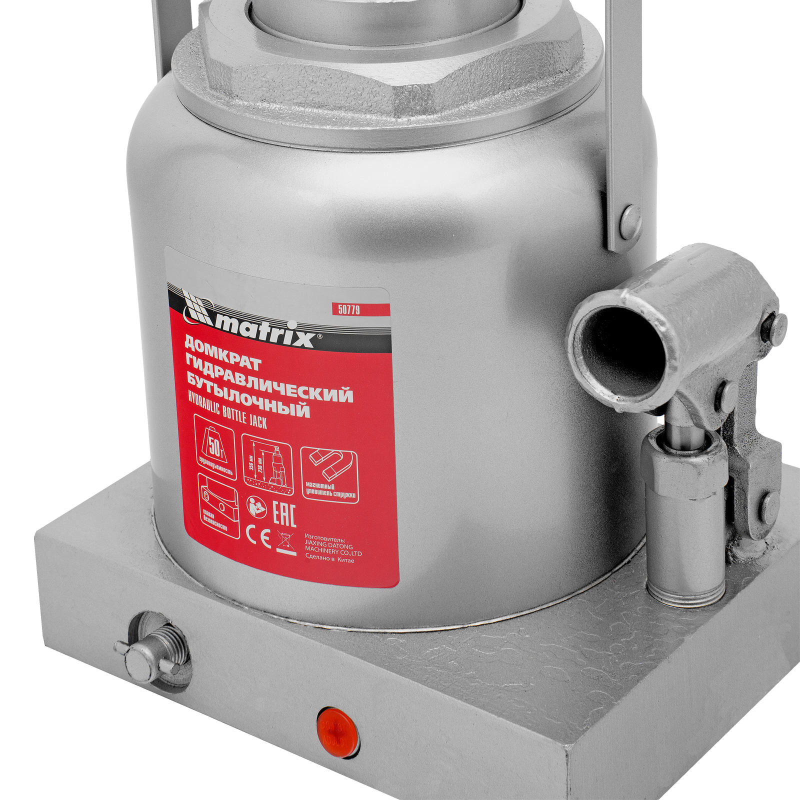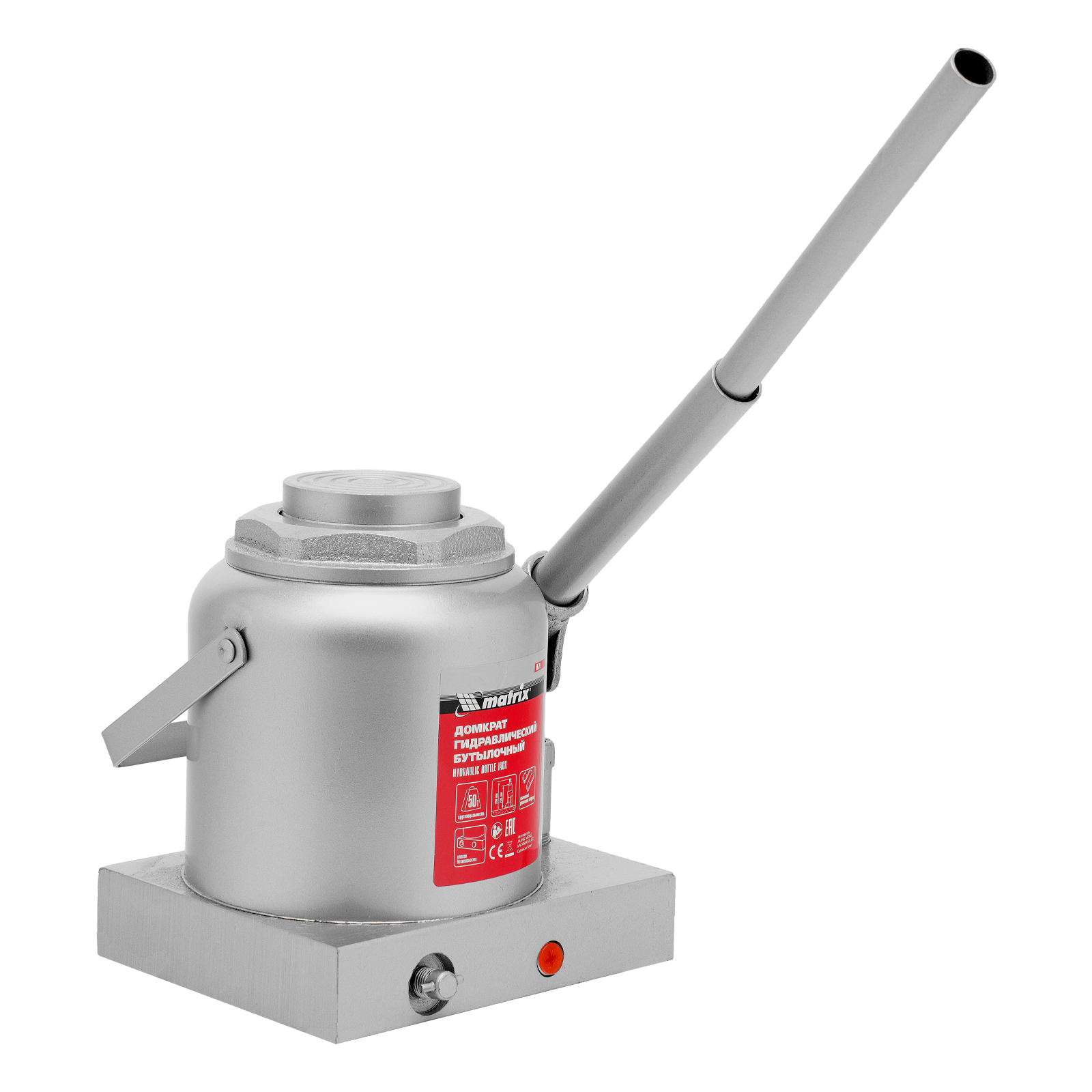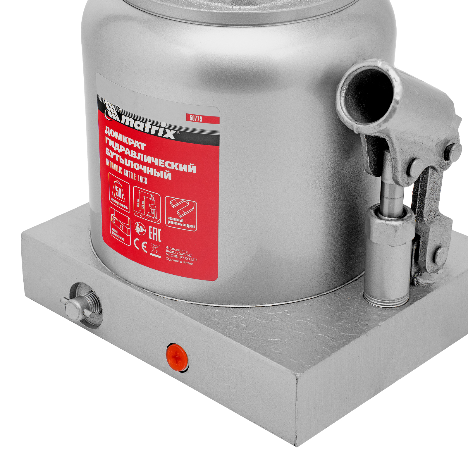 Гидравлический бутылочный домкрат Matrix 50779 поднимает грузы весом до 50 т на высоту 236-356 мм и может использоваться в гараже, на станции ТО или строительной площадке. Встроенный магнитный уловитель собирает металлическую стружку, образующуюся в процессе работы, что защищает домкрат от преждевременного износа.