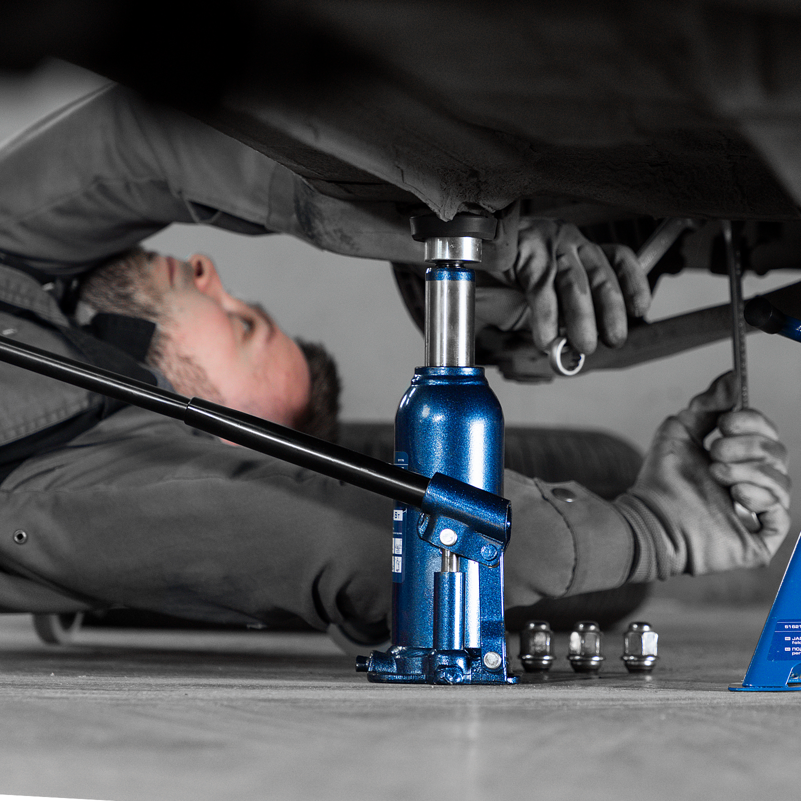 - Безопасная эксплуатация — благодаря предохранительному клапану домкрат не поднимает грузы тяжелее 6000 кг.