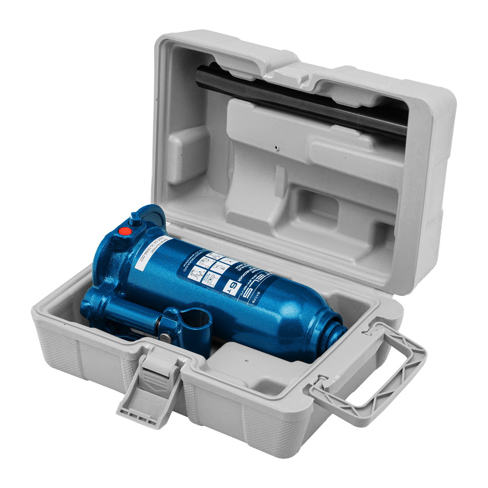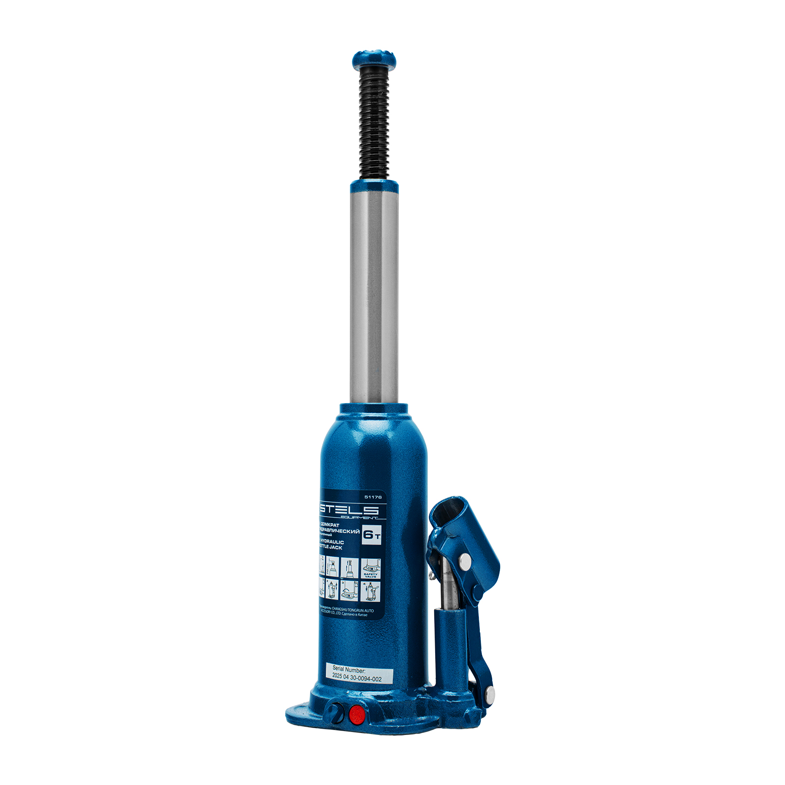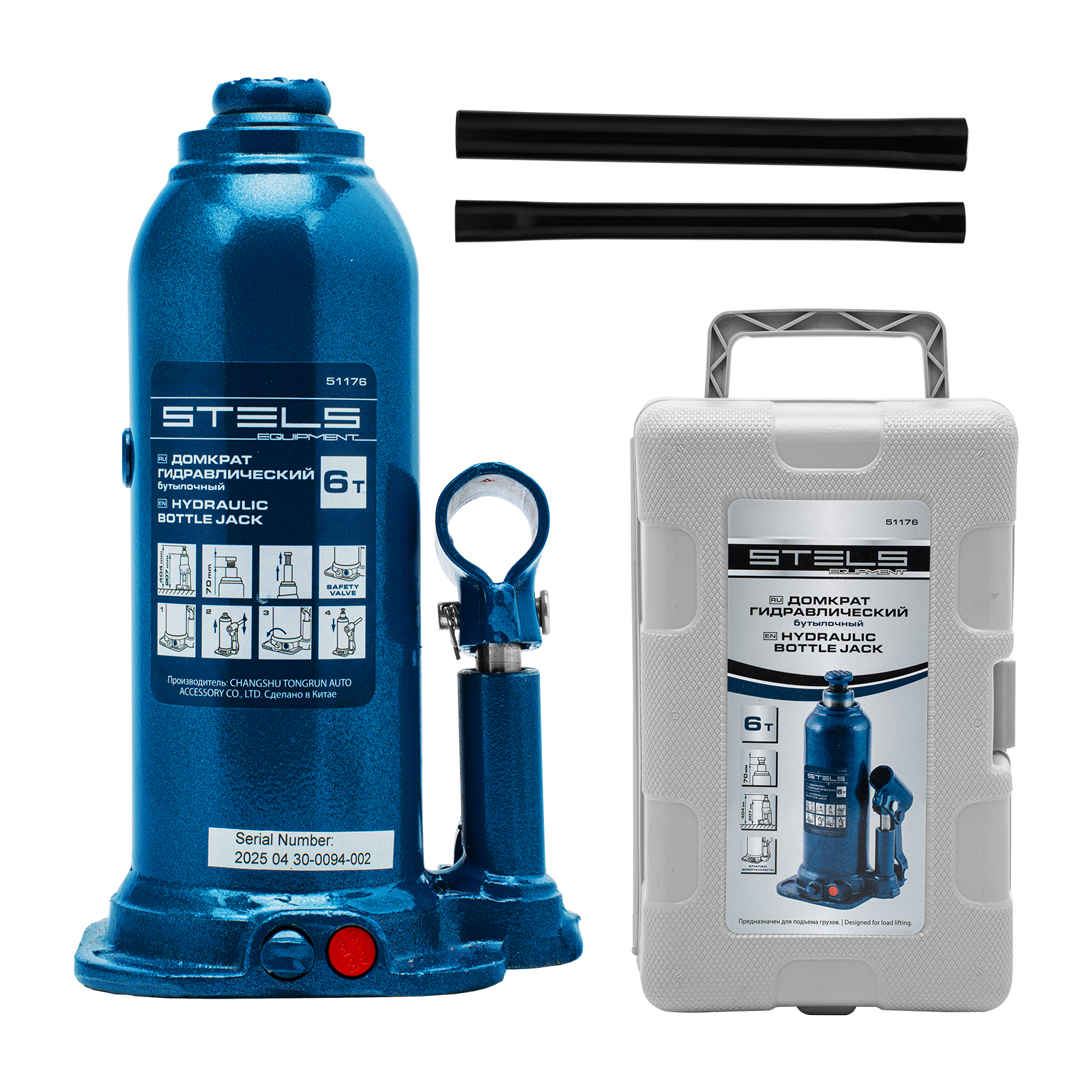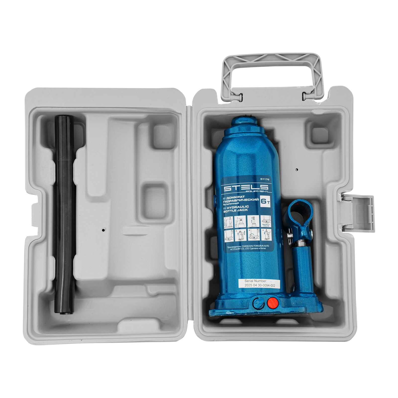 Гидравлический бутылочный домкрат Stels 51176 в пластиковом кейсе предназначен для поднятия грузов весом до 6 т на высоту 207-404 мм. Он не занимает много места и легко помещается в багажник, поэтому его можно брать с собой в дорогу или хранить в гараже. Используется для самостоятельного ремонта авто, также подходит для профессионального применения на станциях технического обслуживания.