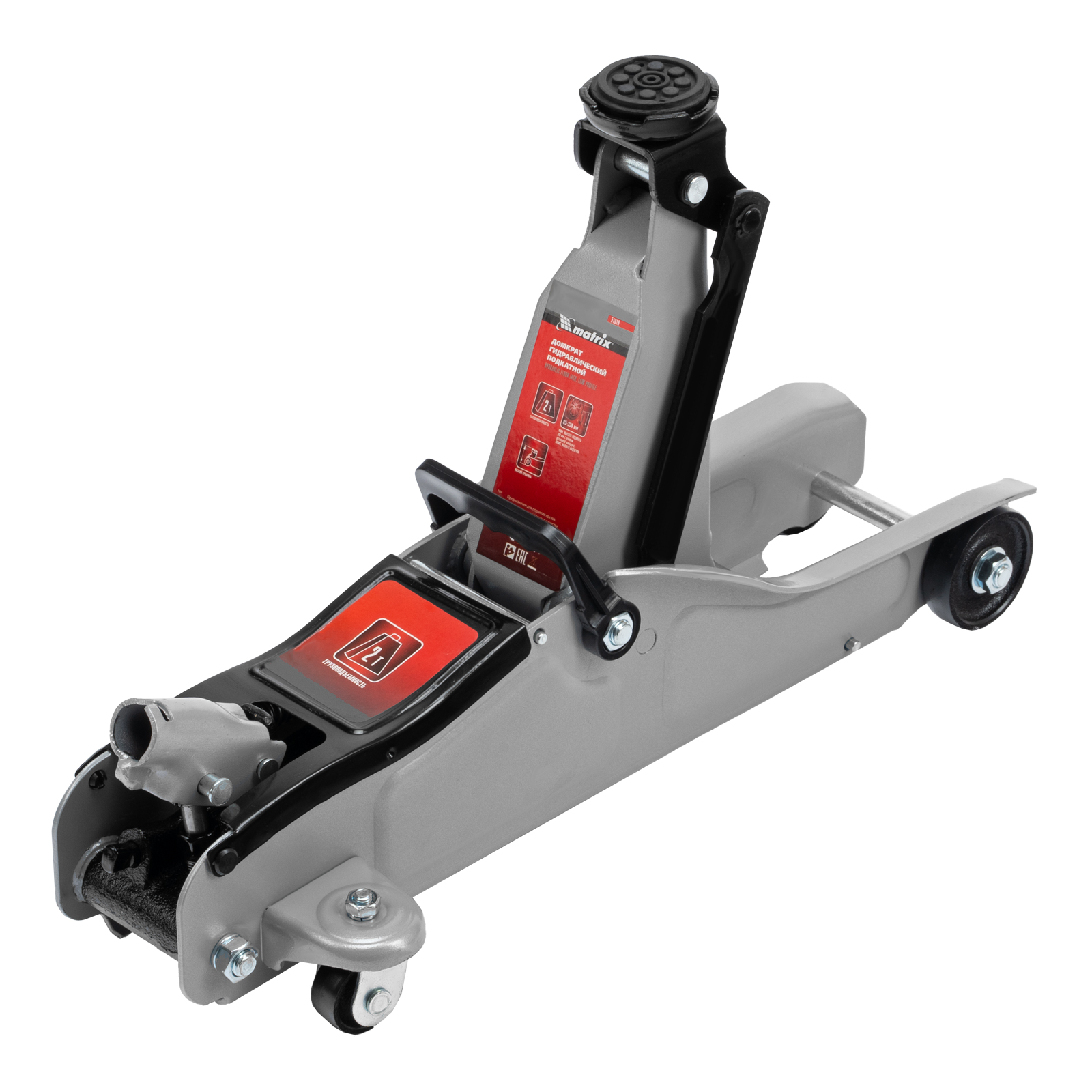 Подкатной гидравлический домкрат Matrix Low Profile 51019 с высотой подхвата 85 мм, поставляющийся в пластиковом кейсе, — полупрофессиональное гаражное оборудование, способное поднимать груз массой до 2 т на высоту до 330 мм. Очень маленькая высота подхвата 85 мм позволяет использовать домкрат для автомашин с небольшим клиренсом. Домкрат будет полезен как в автомастерской, так и в частном гараже.