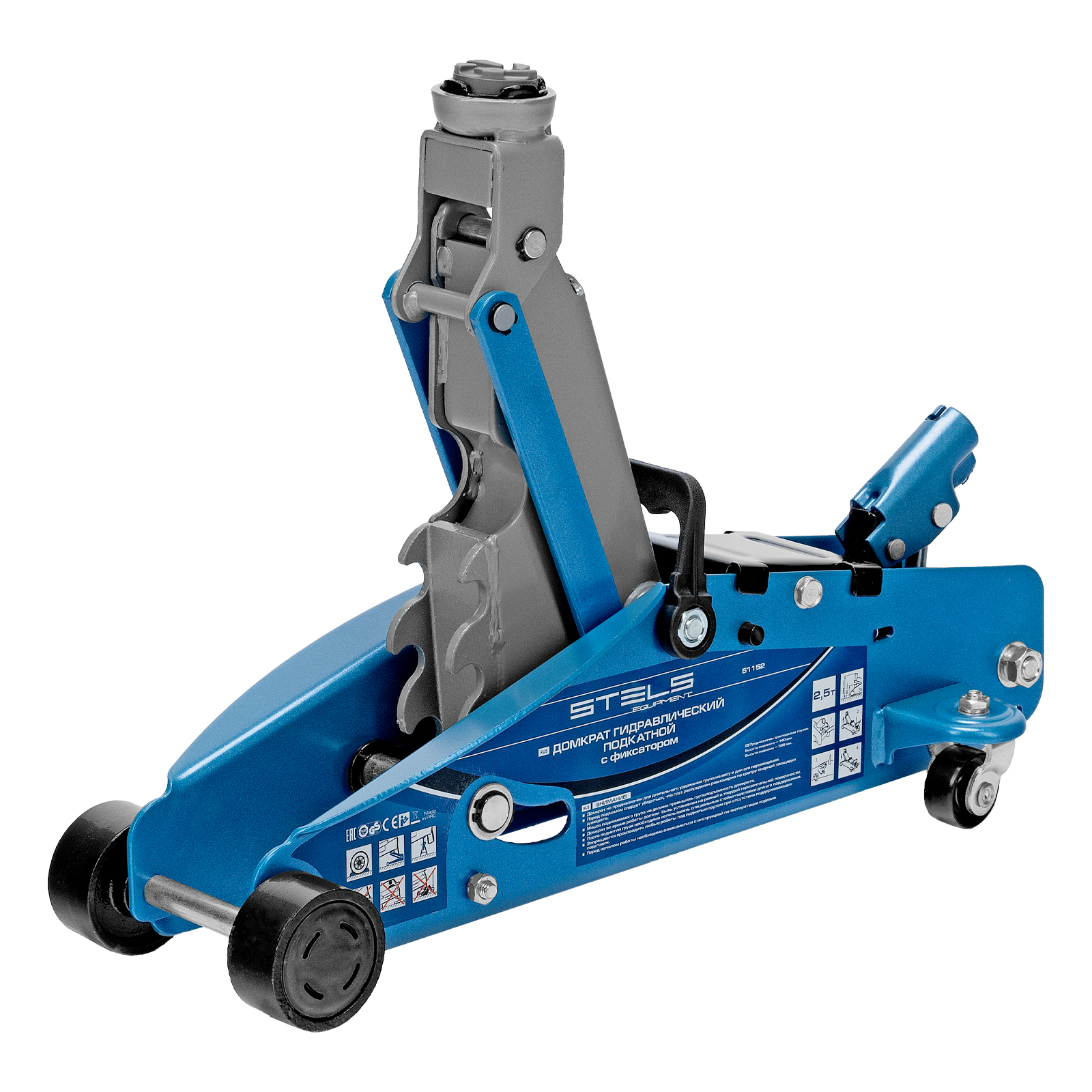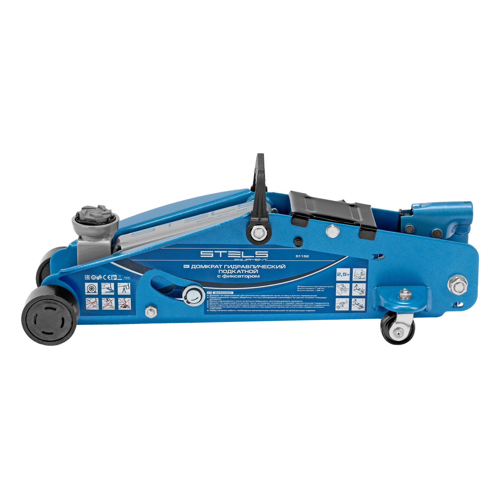 Подкатной гидравлический домкрат Stels Safety Pin 51152 с фиксатором, с высотой подхвата 140 мм, позволяет поднимать грузы весом до 2,5 т на высоту 385 мм. За счет низкого подхвата используется для обслуживания автомашин со стандартным дорожным просветом. Домкрат подходит для самостоятельного обслуживания авто.