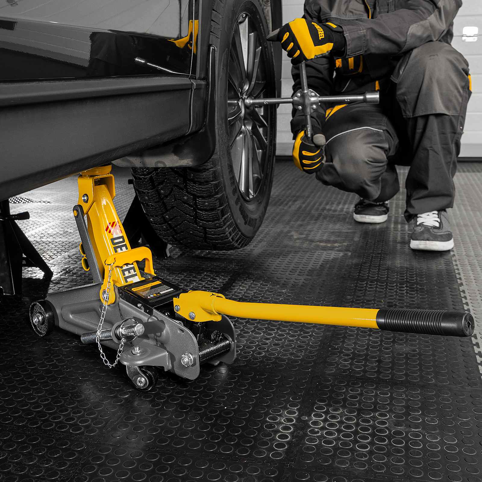 - Эргономичность — домкрат имеет переставную рукоятку для комфортного перемещения и извлечения из-под автомобиля.