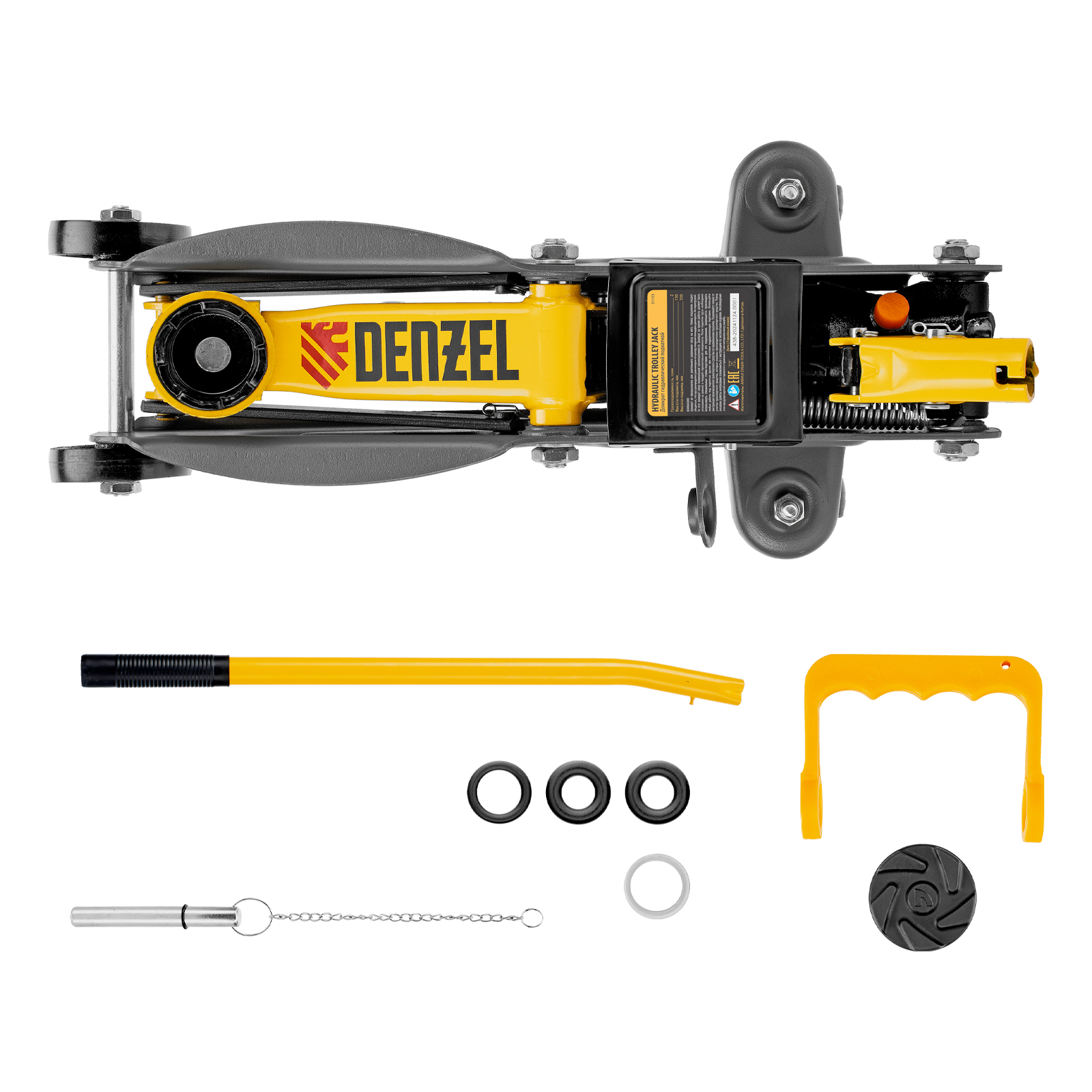 Домкрат гидравлический подкатной с фиксатором, 2 т, 130-330 мм Denzel в Москве
