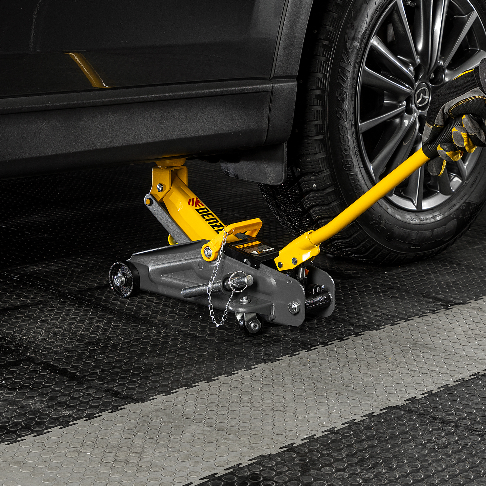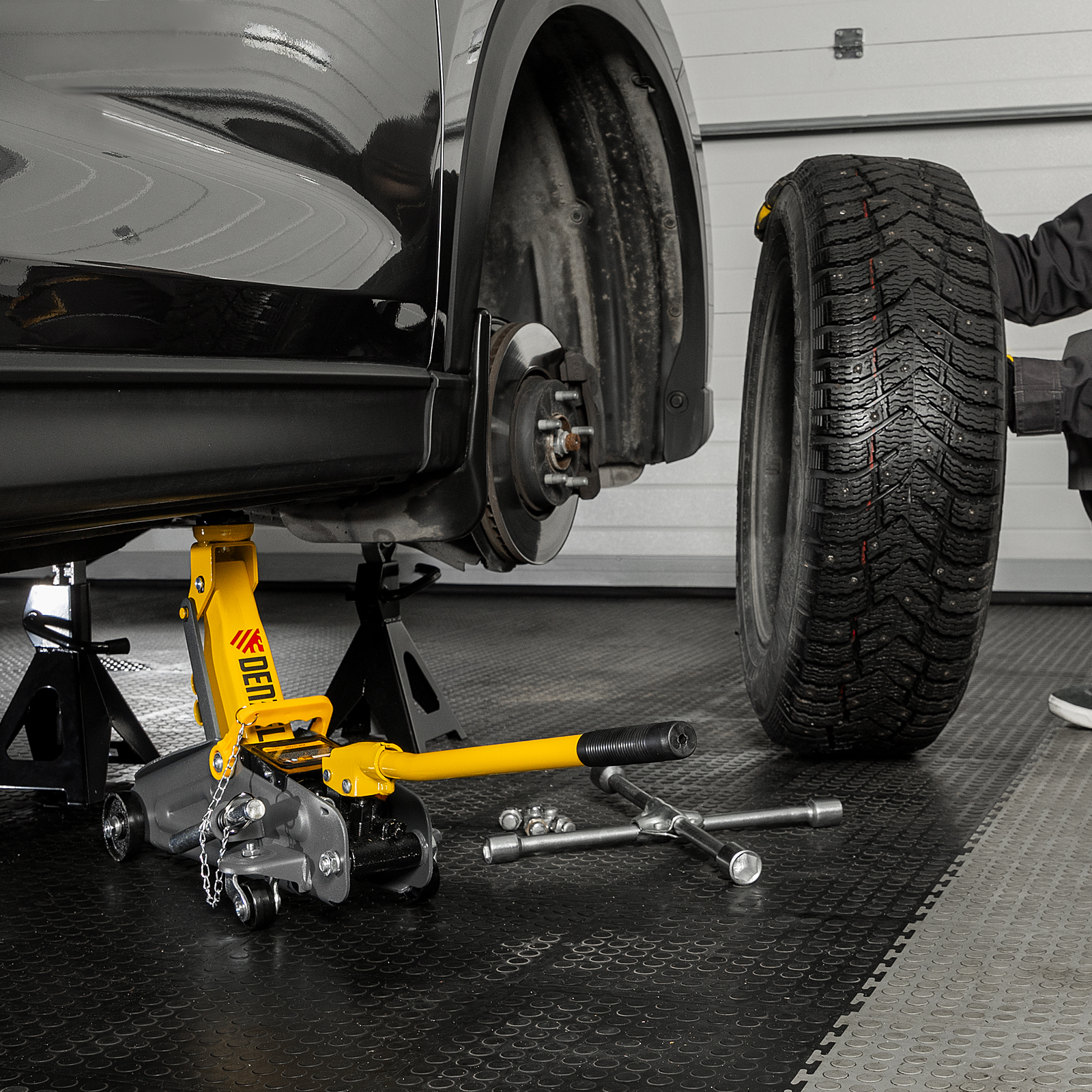 - Эргономичность — домкрат имеет переставную рукоятку для комфортного перемещения и извлечения из-под автомобиля.