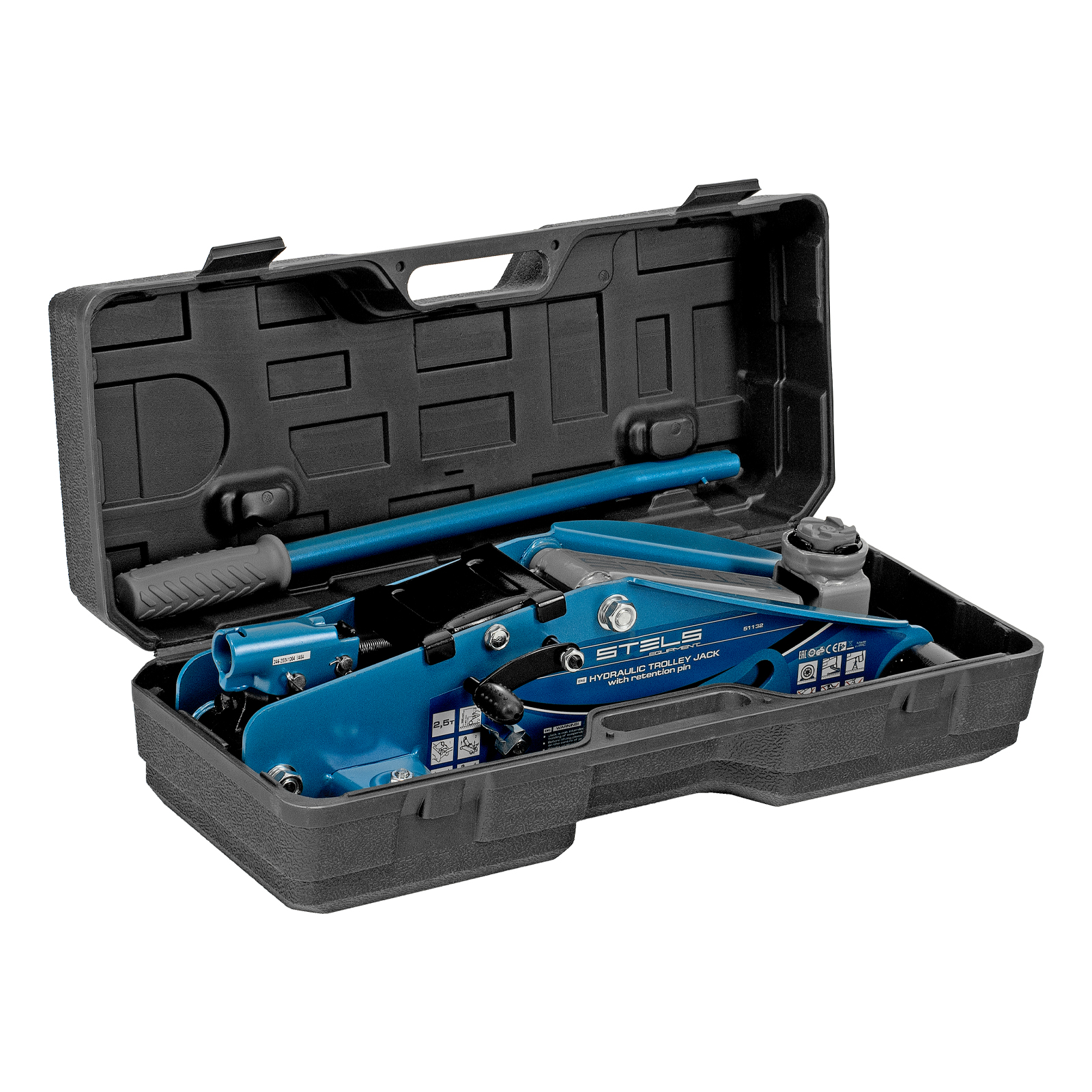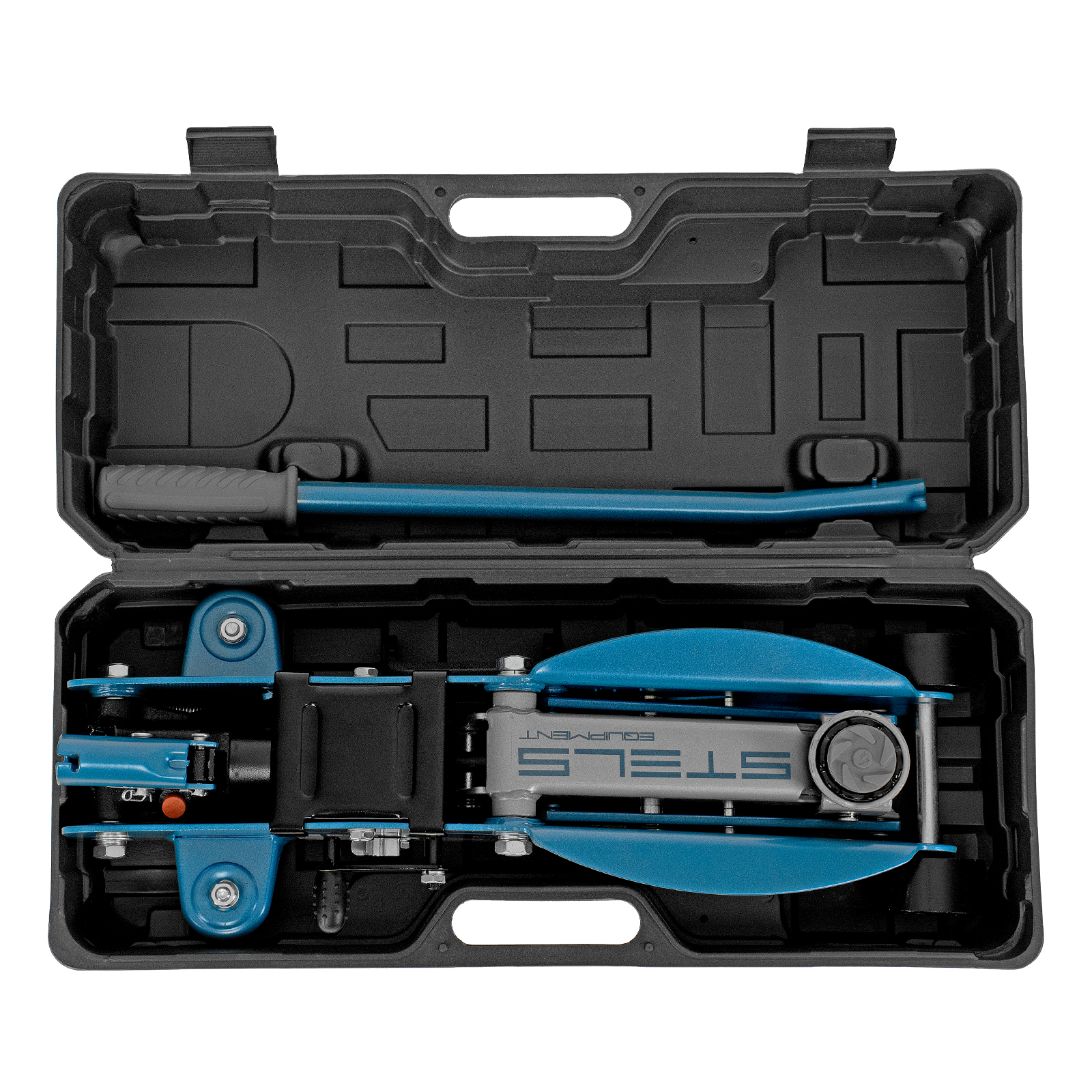 - Удобное хранение и транспортировка — домкрат поставляется в прочном пластиковом кейсе.