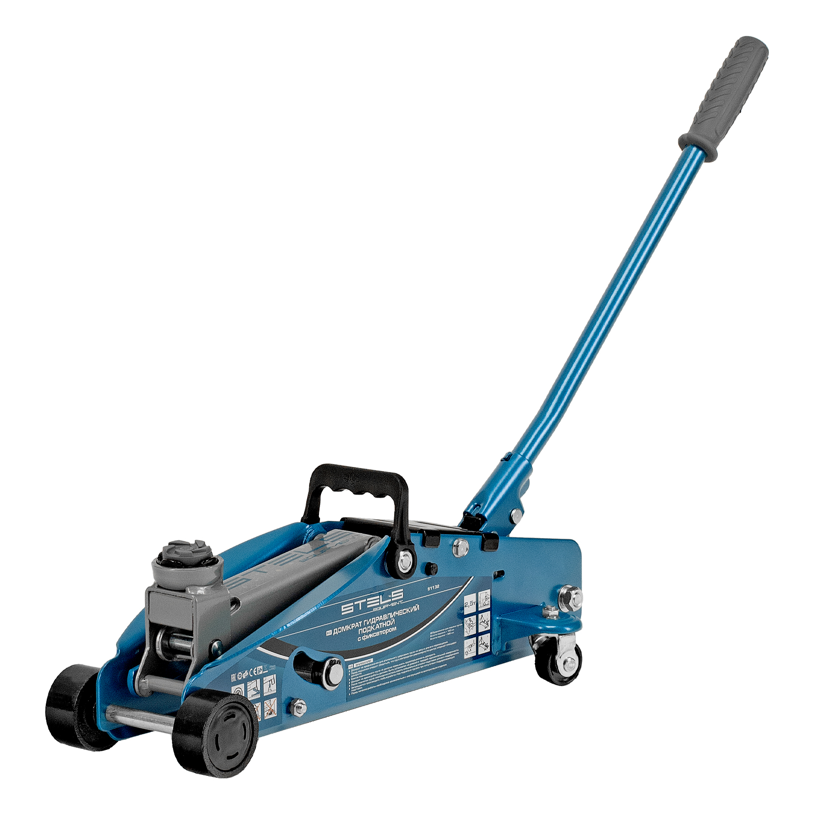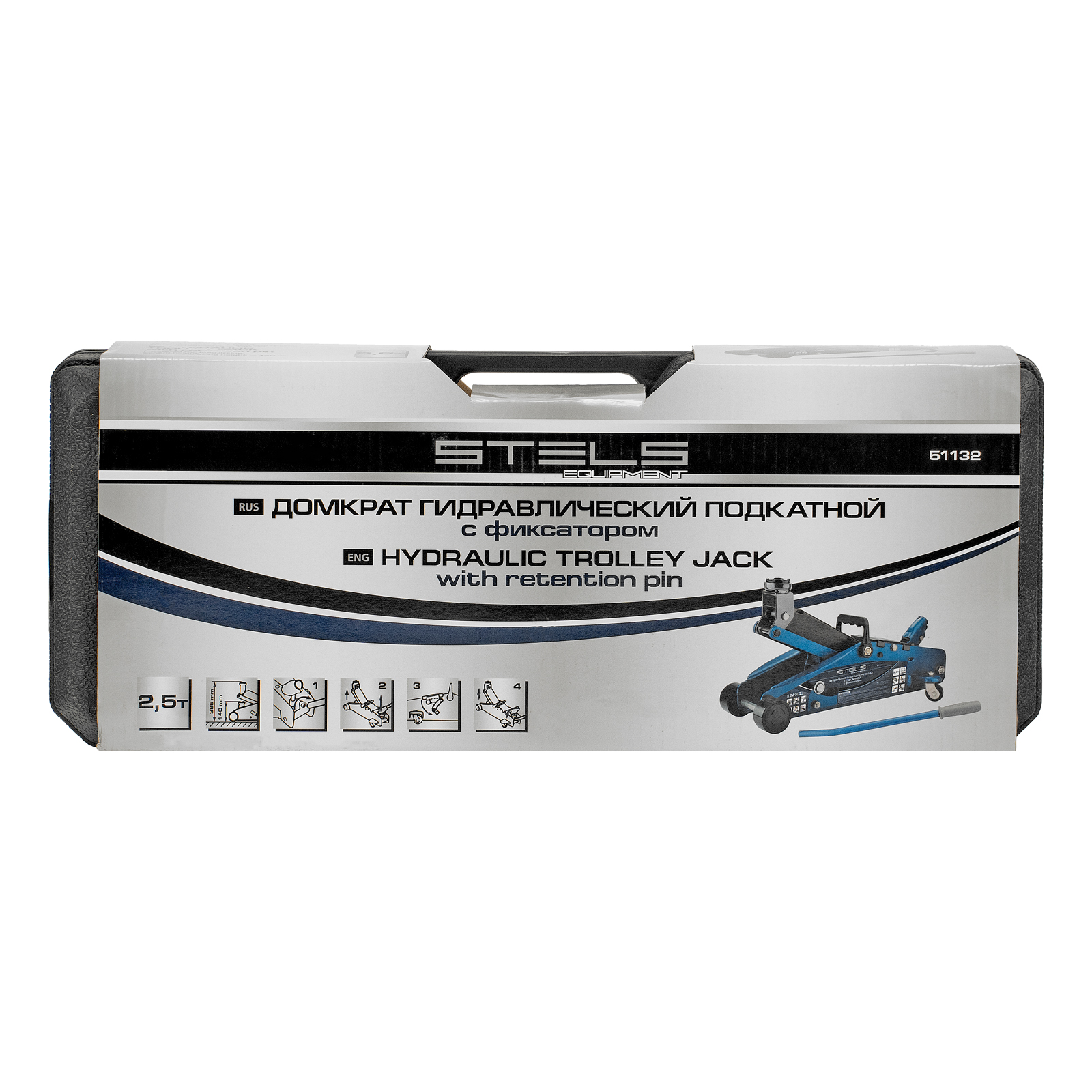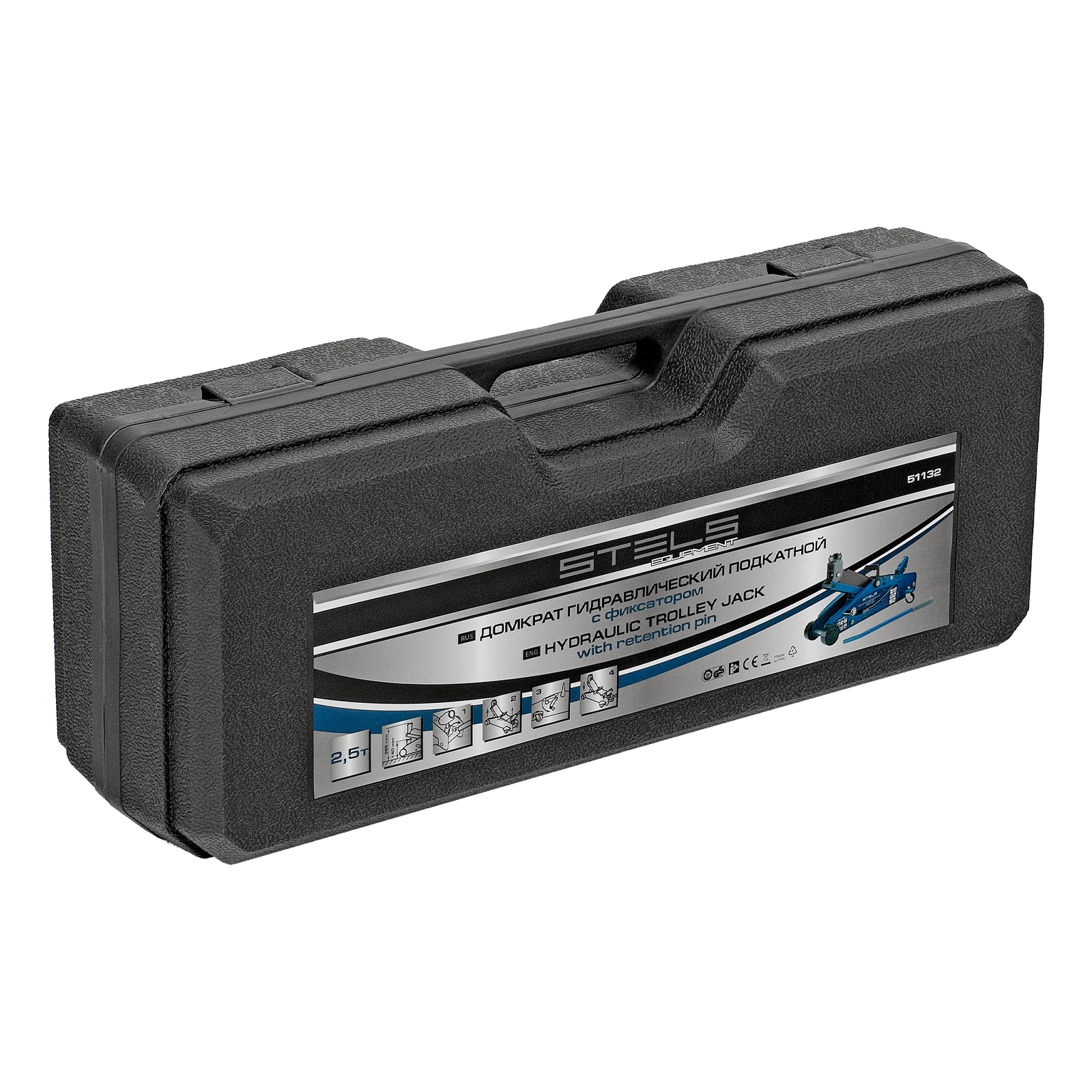 Подкатной гидравлический домкрат Stels Safety Pin 51132 с фиксатором, с высотой подхвата 140 мм, поставляющийся в кейсе, позволяет поднимать грузы весом до 2,5 т на высоту 385 мм. Используется для обслуживания автомобилей со стандартным дорожным просветом. Домкрат подходит для самостоятельного обслуживания авто.