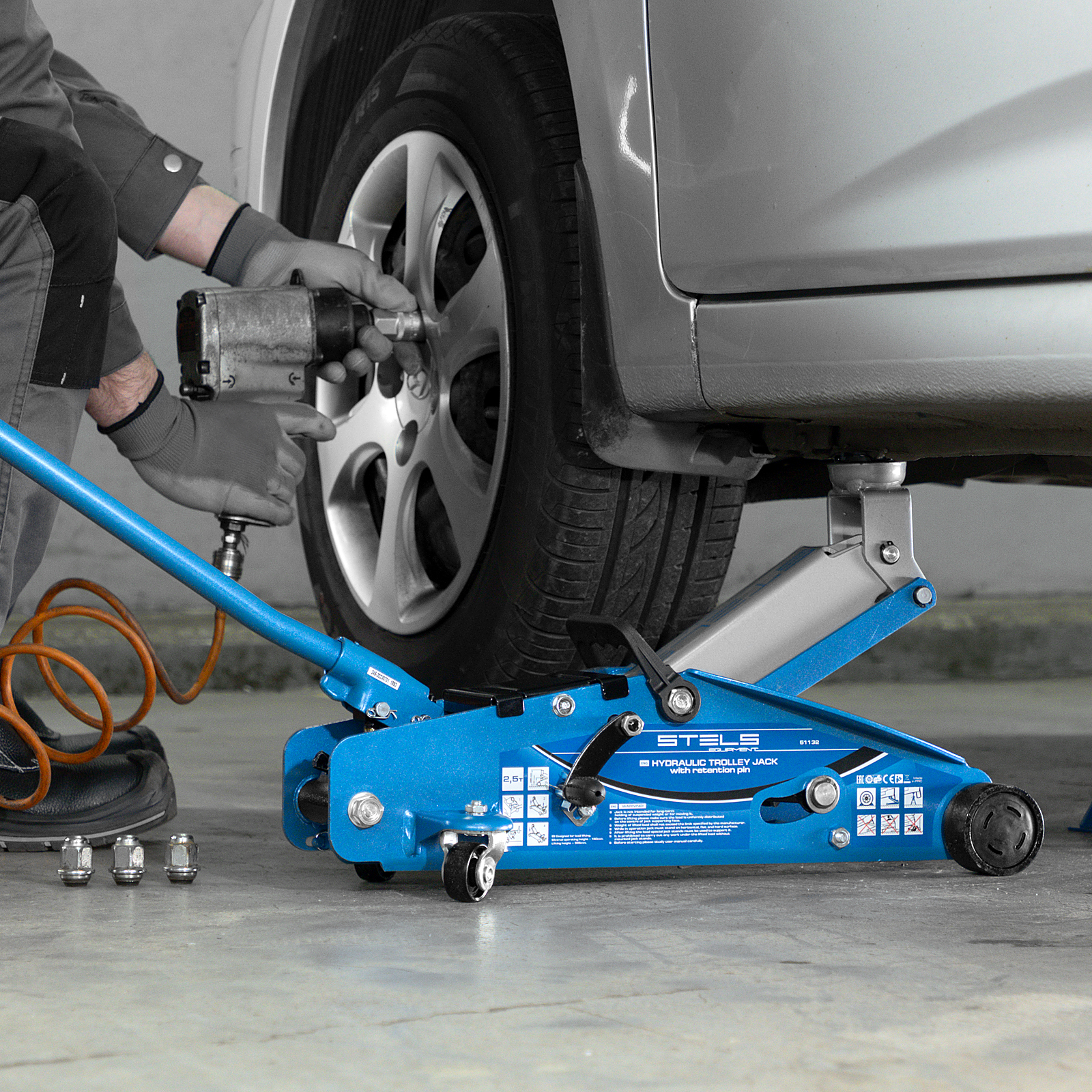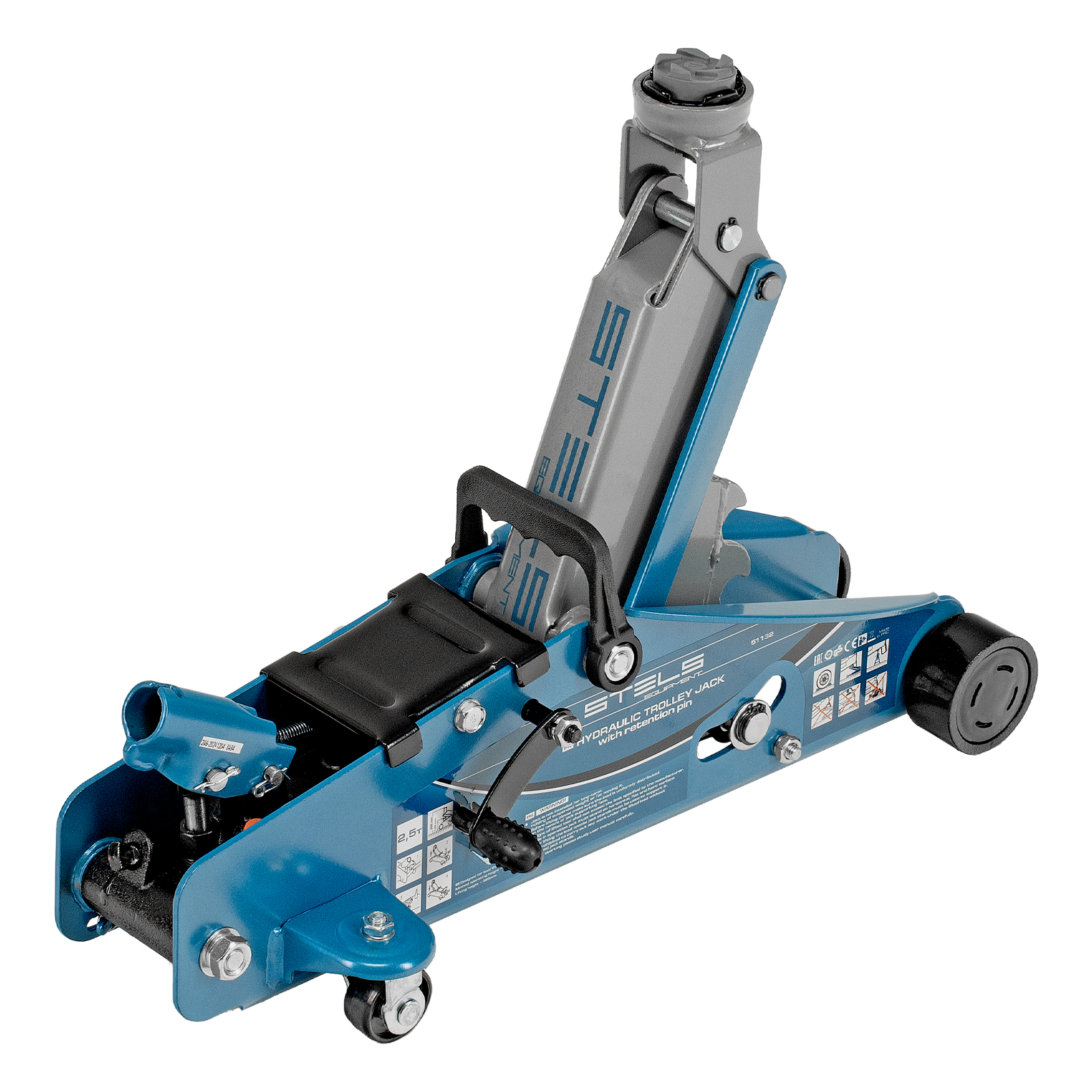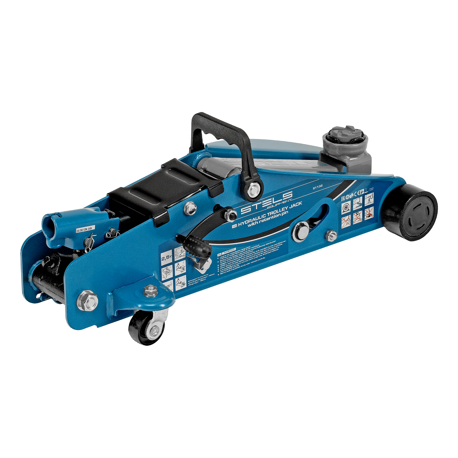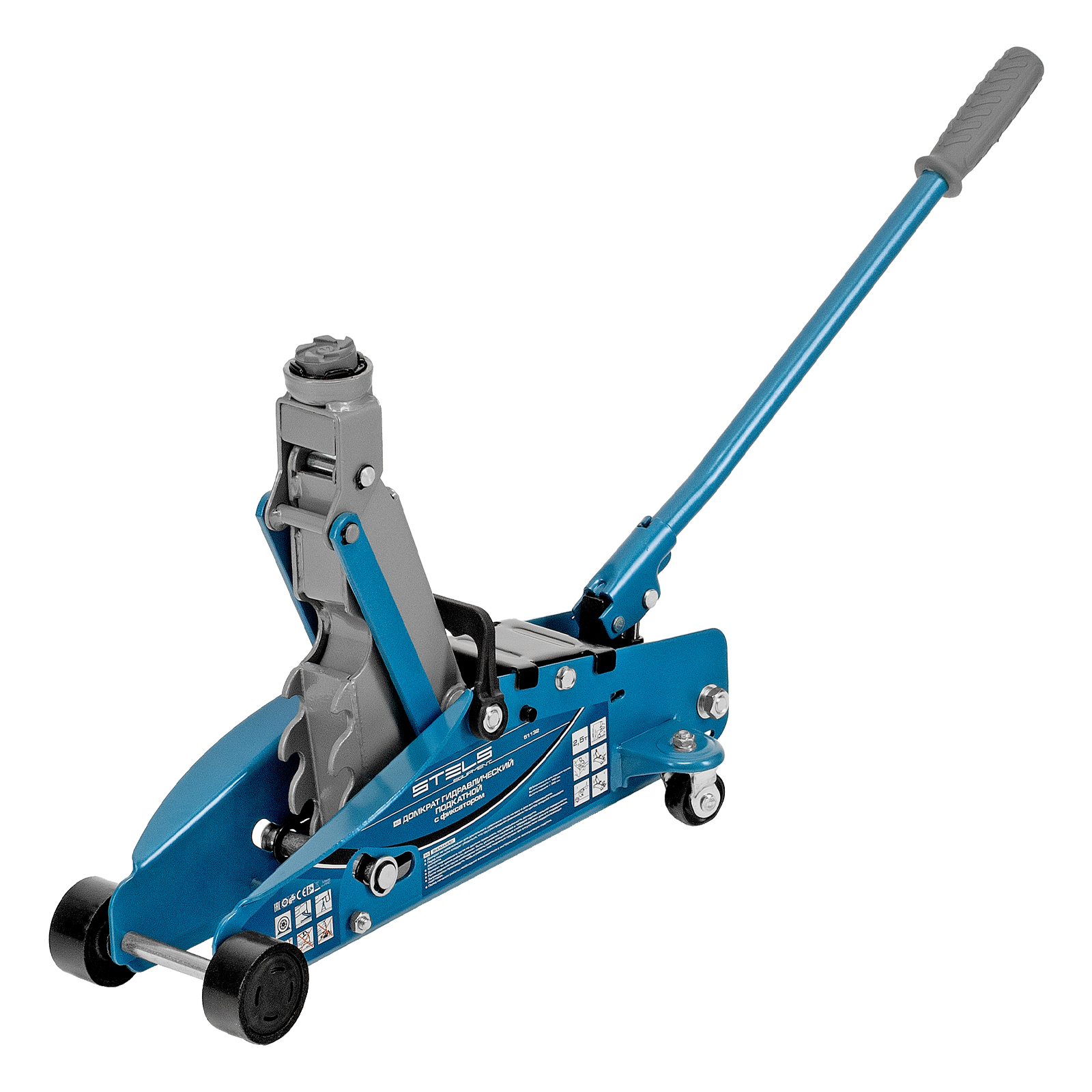 Подкатной гидравлический домкрат Stels Safety Pin 51132 с фиксатором, с высотой подхвата 140 мм, поставляющийся в кейсе, позволяет поднимать грузы весом до 2,5 т на высоту 385 мм. Используется для обслуживания автомобилей со стандартным дорожным просветом. Домкрат подходит для самостоятельного обслуживания авто.