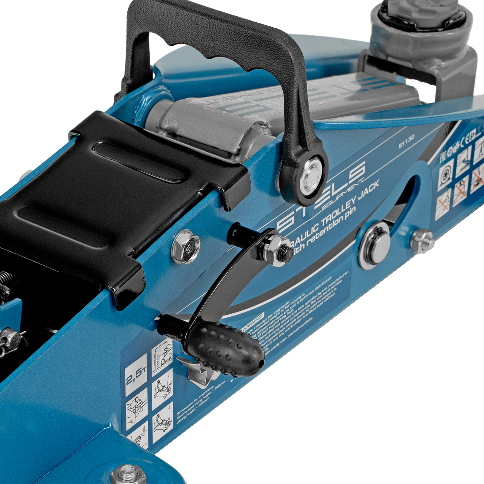 - Защита от поломки — предохранительный клапан предотвращает перегрузку, не позволяя поднимать груз массой более 2,5 т.
