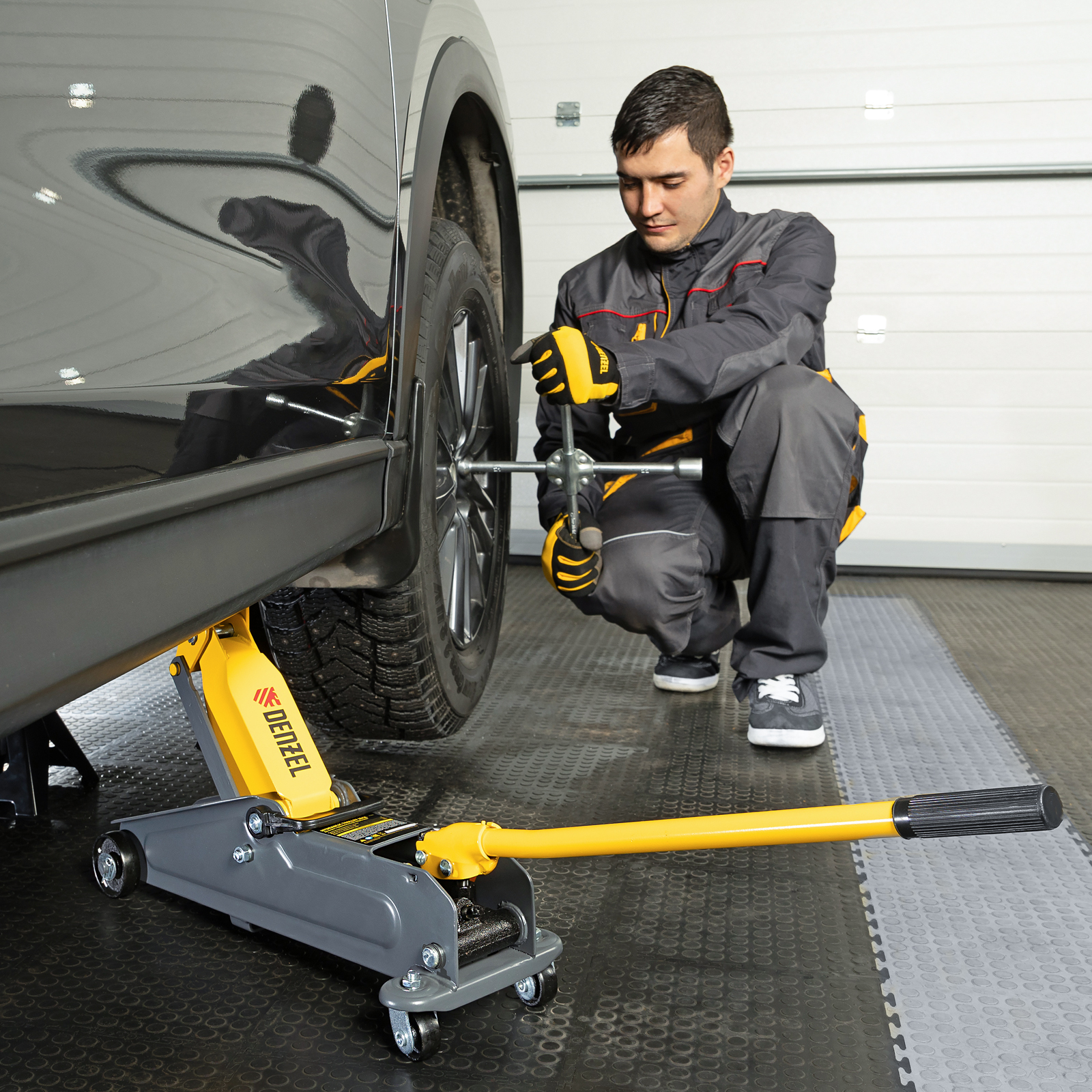 - Аккуратная работа — резиновая опора защищает днище автомобиля от нежелательных повреждений.